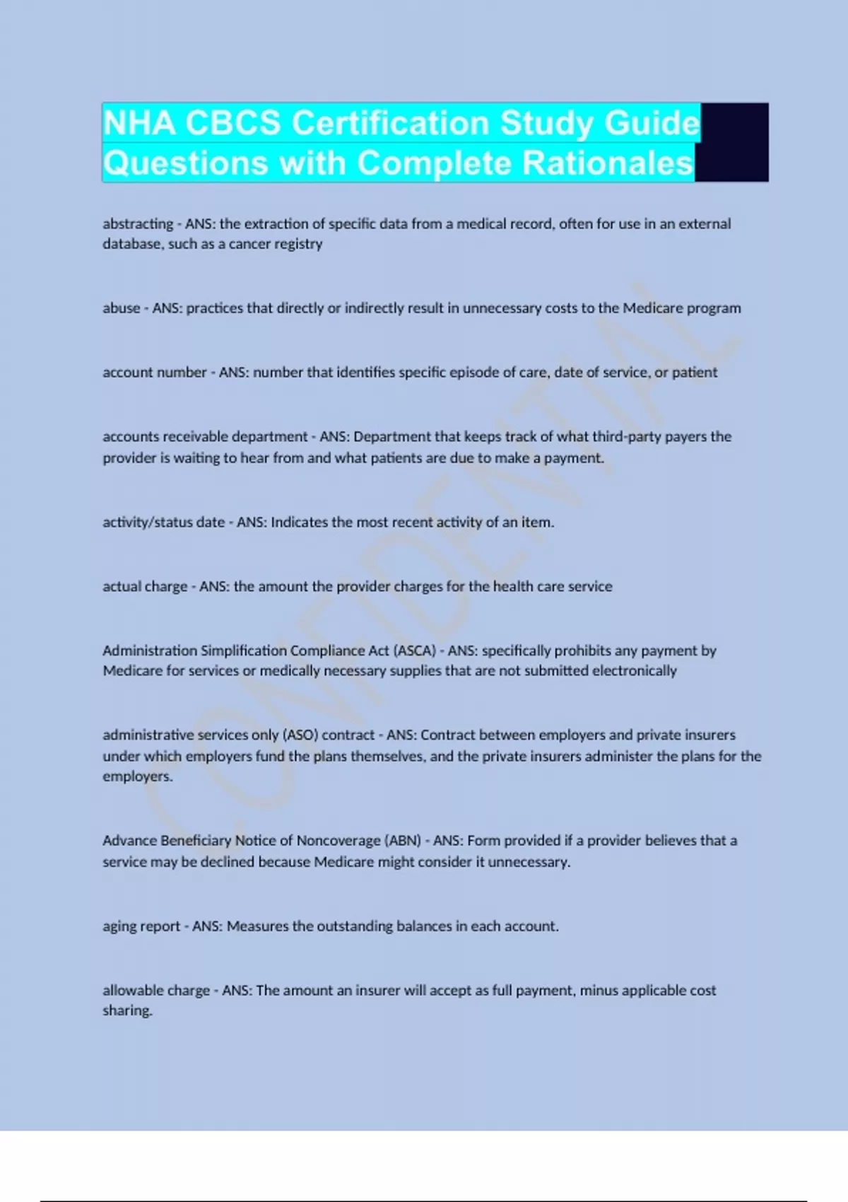 NHA CBCS Certification Study Guide Questions with Complete Rationales