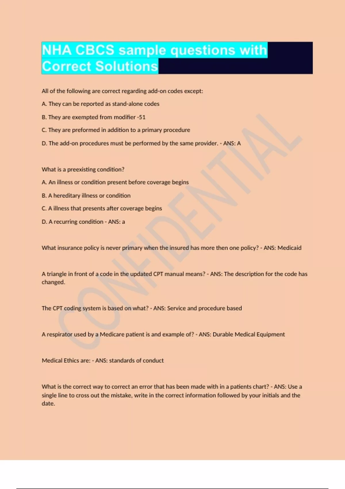 nha cbcs sample questions with correct solutions