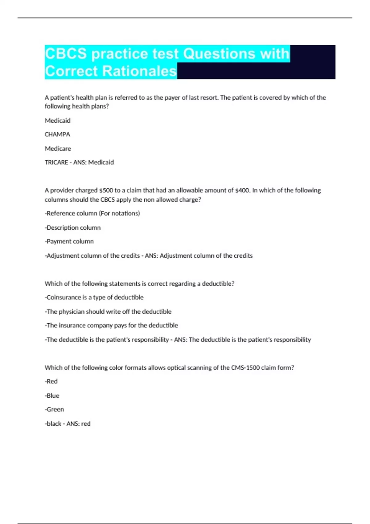 CBCS practice test Questions with Correct Solutions