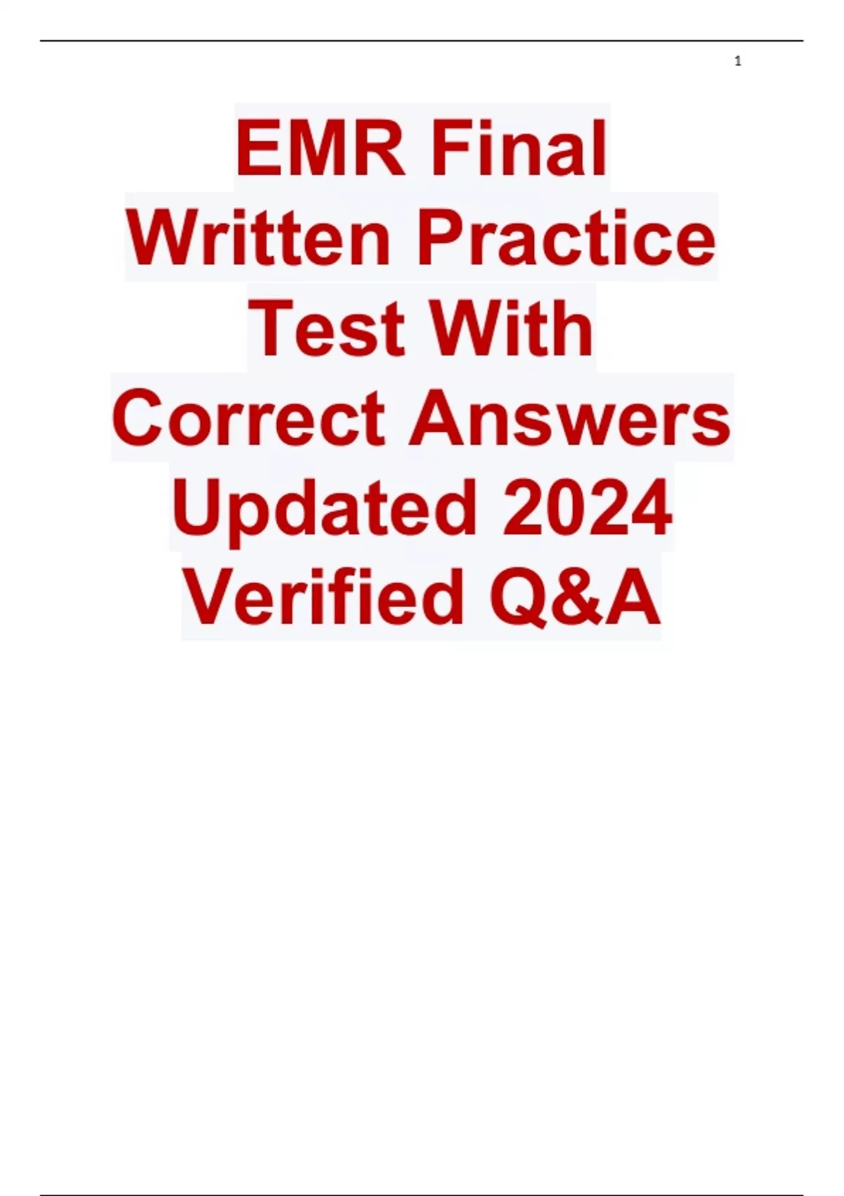 EMR Final Written Practice Test With Correct Answers Updated 2024 Verified Q&A
