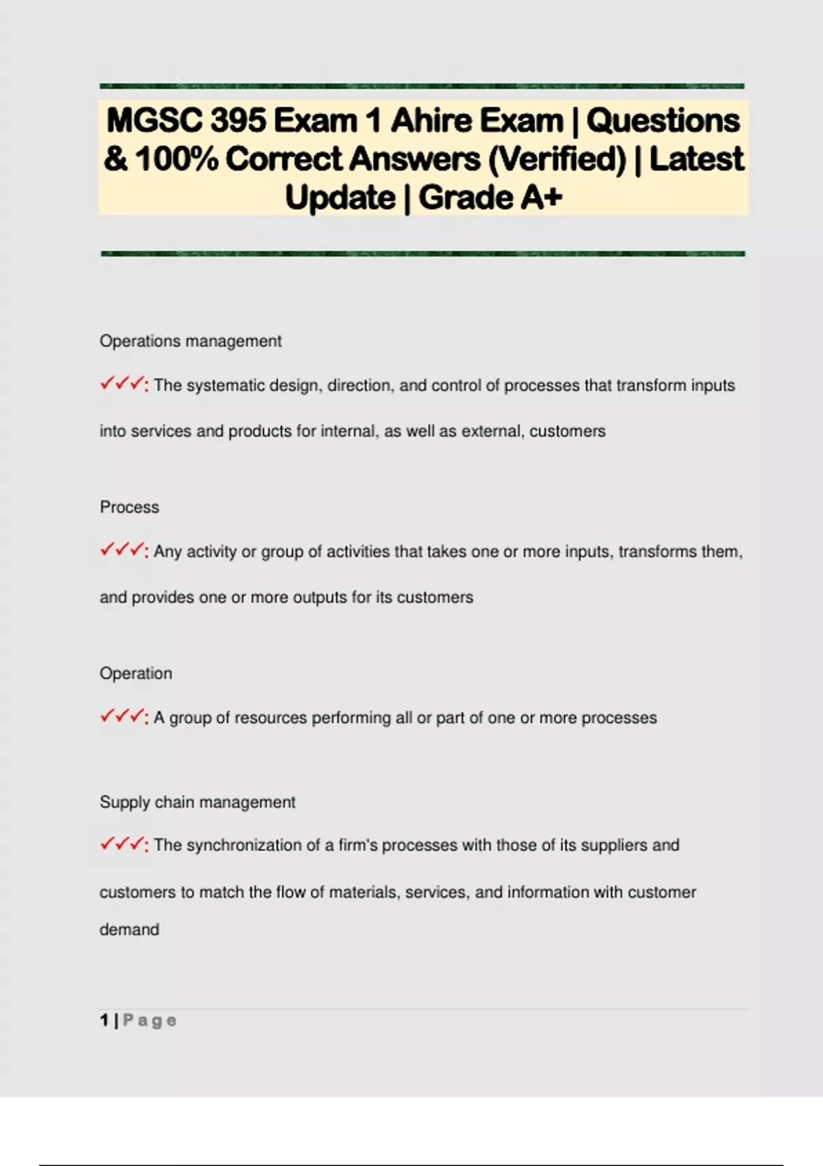 mgsc 395 exam 1 ahire exam questions 100 cor