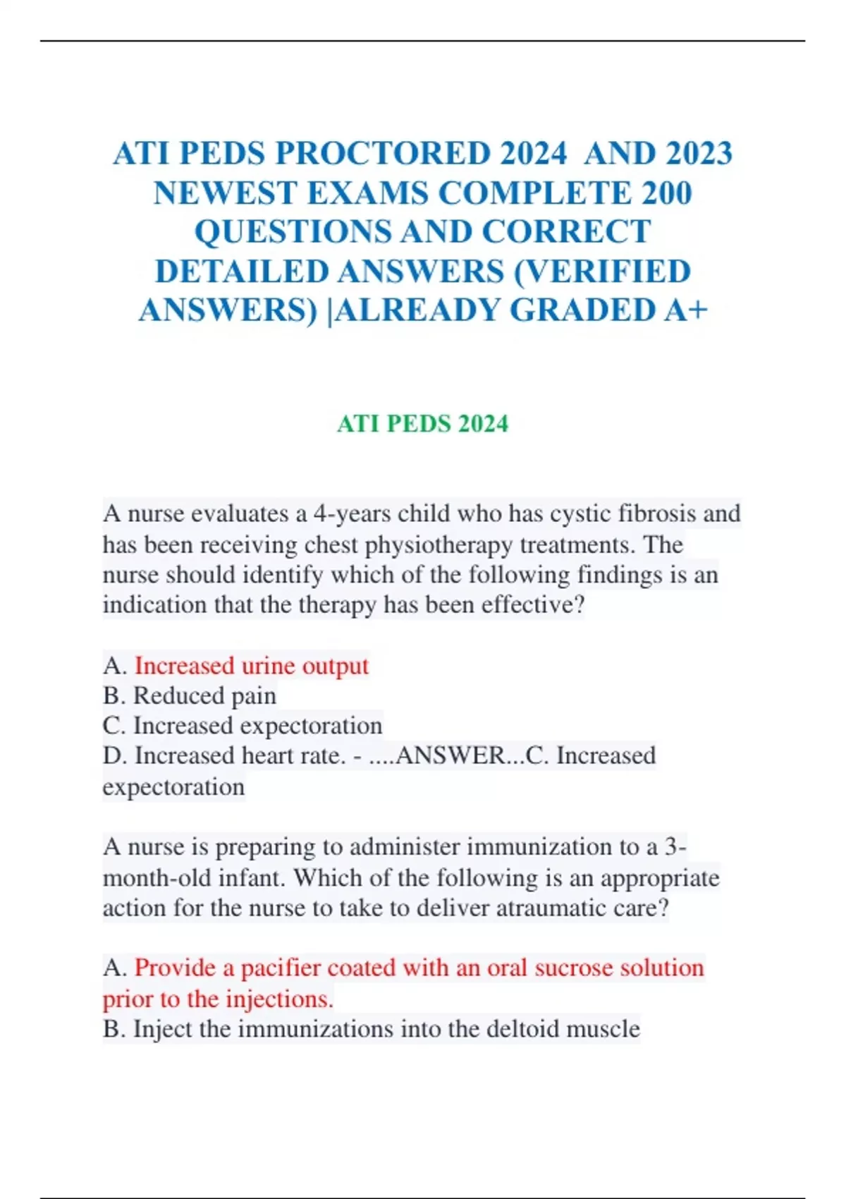 ATI PEDS PROCTORED 2024 AND 2023 NEWEST EXAMS COMPLETE 200 QUESTIONS AND CORRECT DETAILED ANSWERS (VERIFIED ANSWERS) |ALREADY GRADED A+