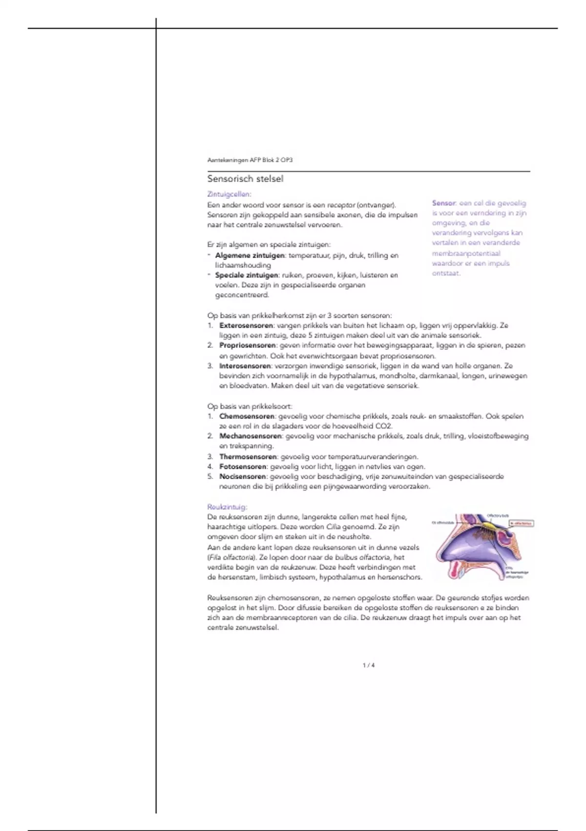 3. Interosensoren: verzorgen inwendige sensoriek, liggen in de wand van holle organen. Ze
