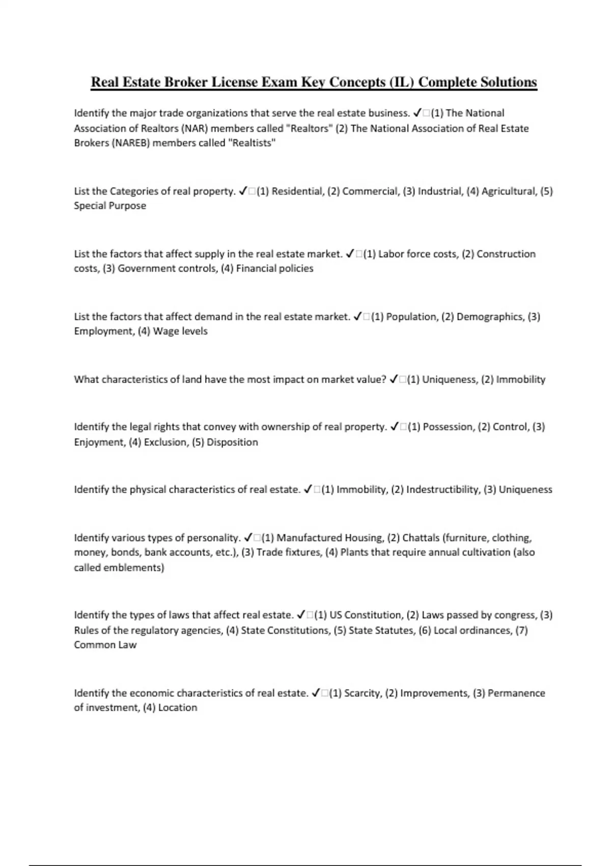 Real Estate Broker License Exam Key Concepts (IL) Complete Solutions