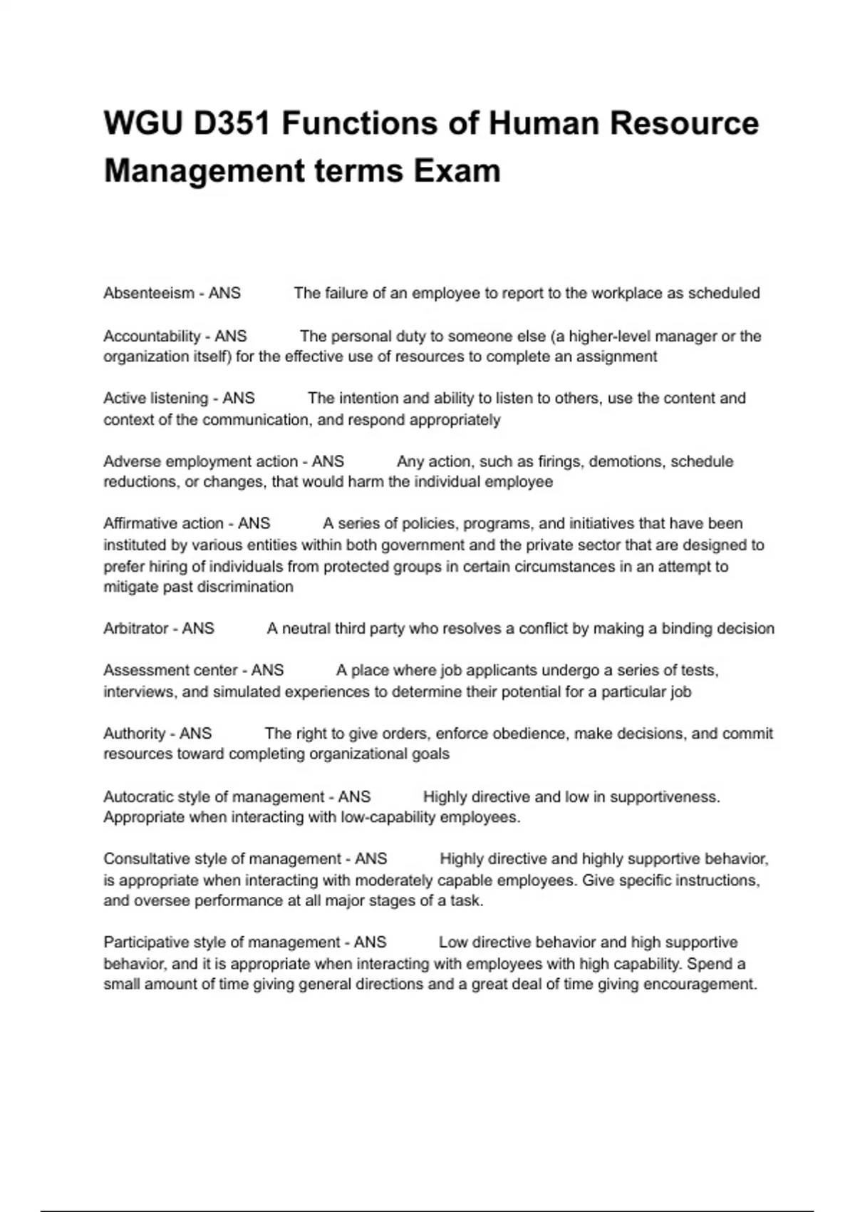 WGU D351 Functions of Human Resource Management terms Exam Questions Rated 100%