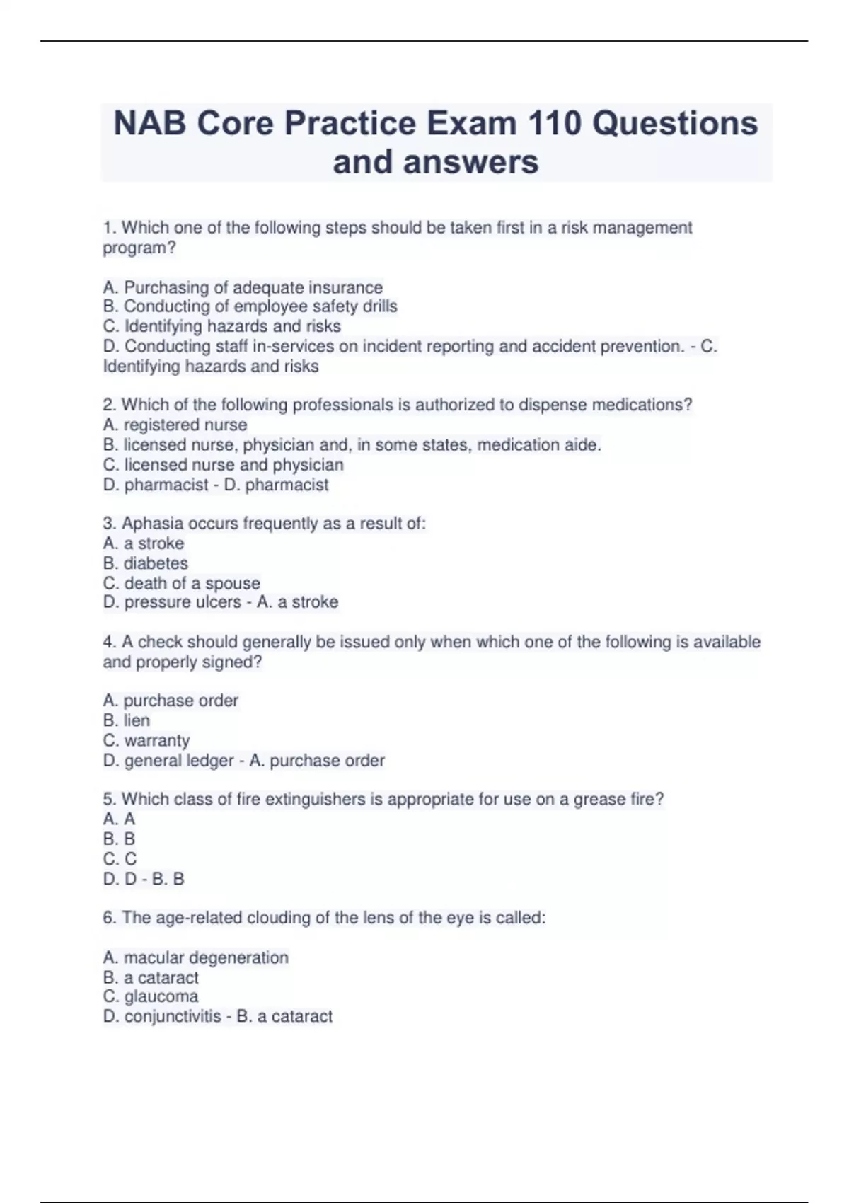 nab core practice exam 110 questions and answers