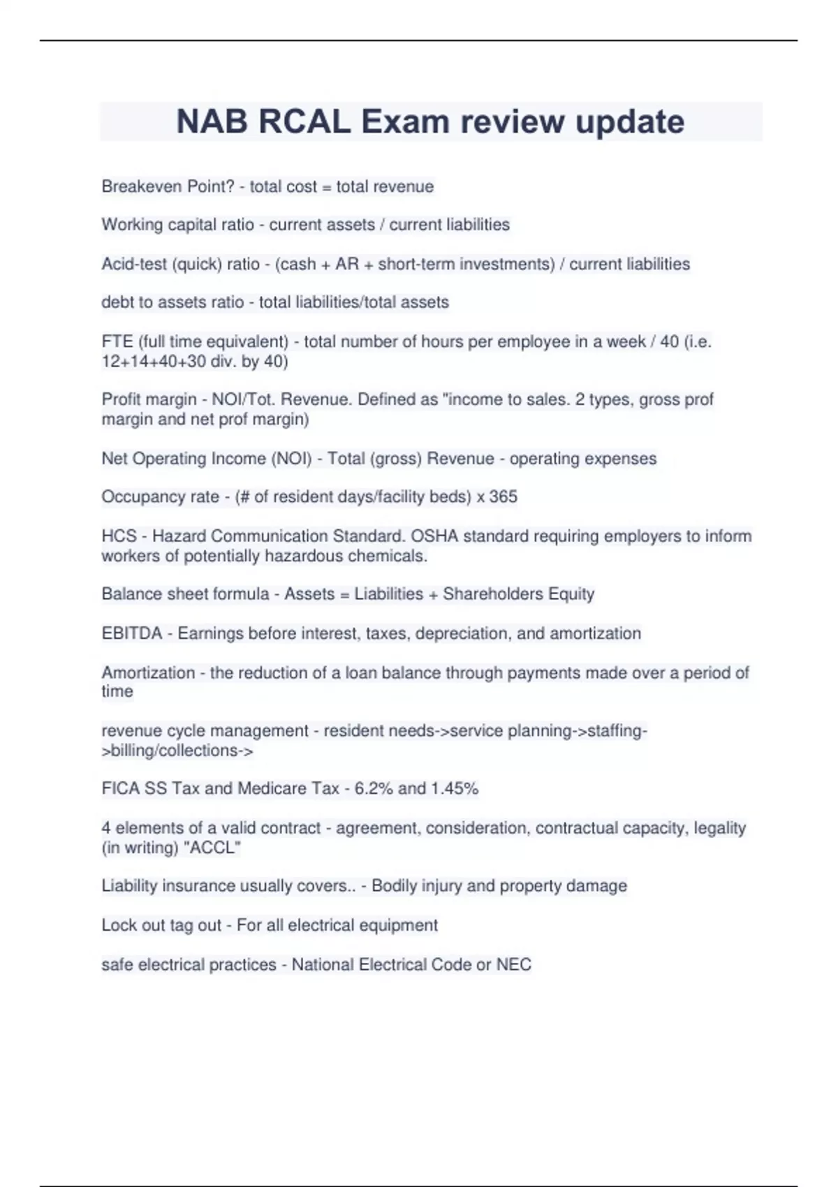 NAB RCAL Exam review update