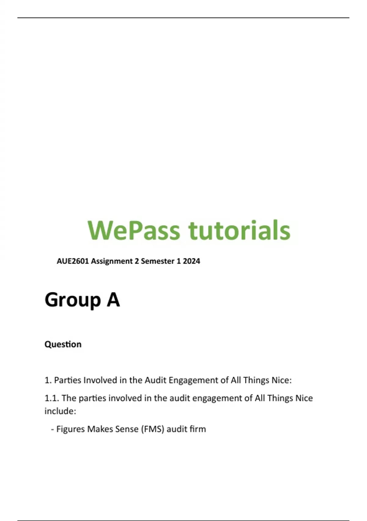 1.1. The parties involved in the audit engagement of All Things Nice