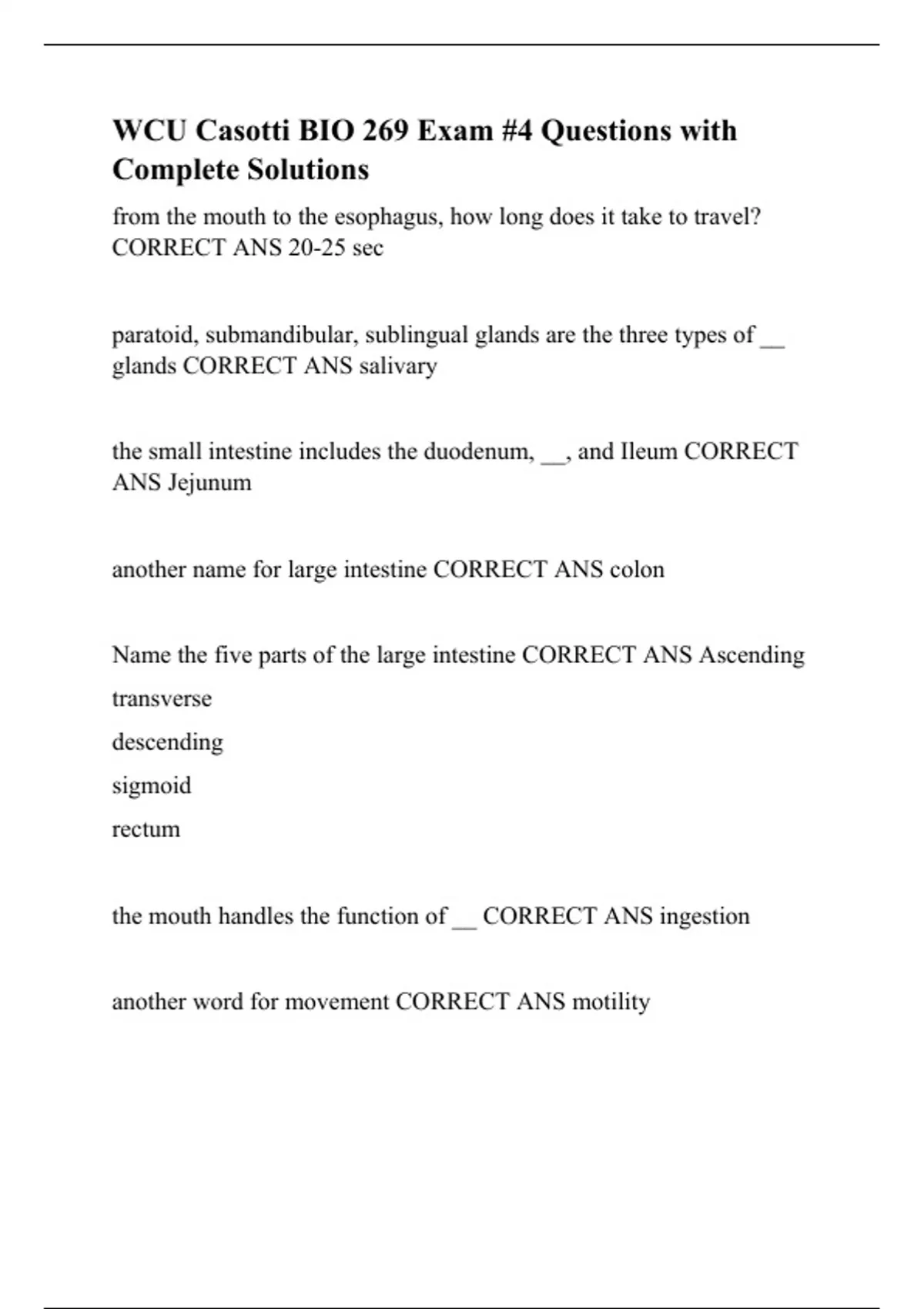 WCU Casotti BIO 269 Exam #4 Questions with Complete Solutions