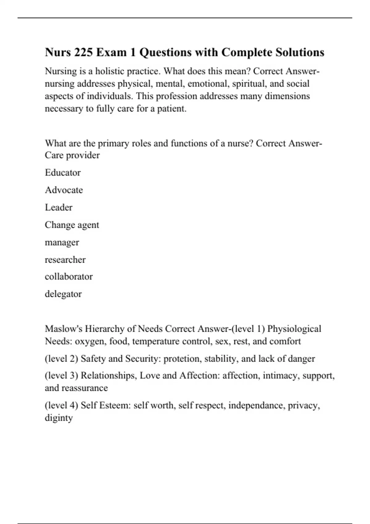 nurs 225 exam 1 questions with complete solutions