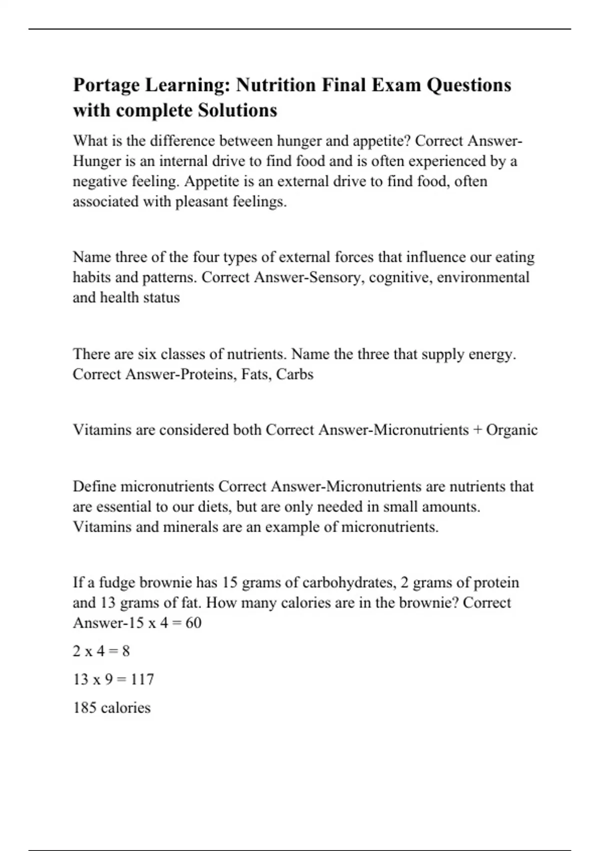 Portage Learning: Nutrition Final Exam Questions with complete Solutions
