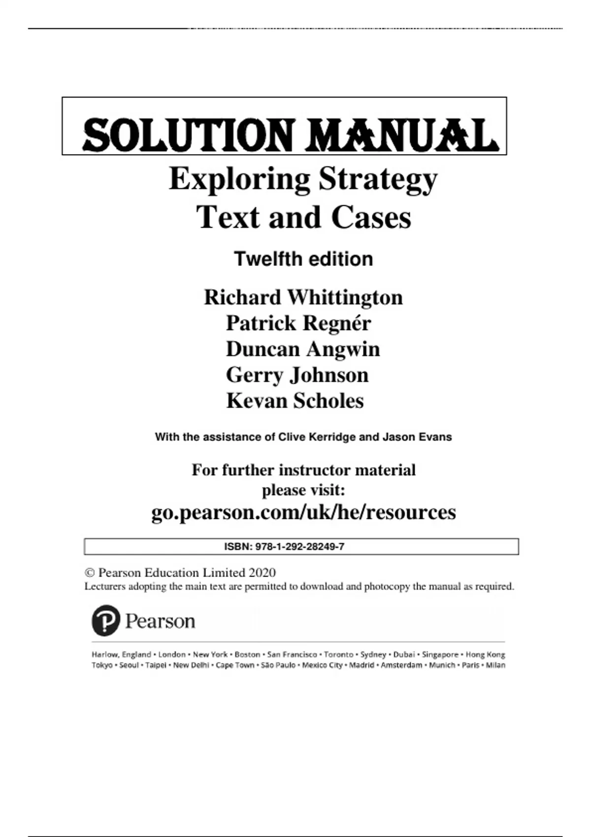 Solution Manual for Exploring Strategy Text And Cases 12th Edition Gerry Johnson, Richard Whittington