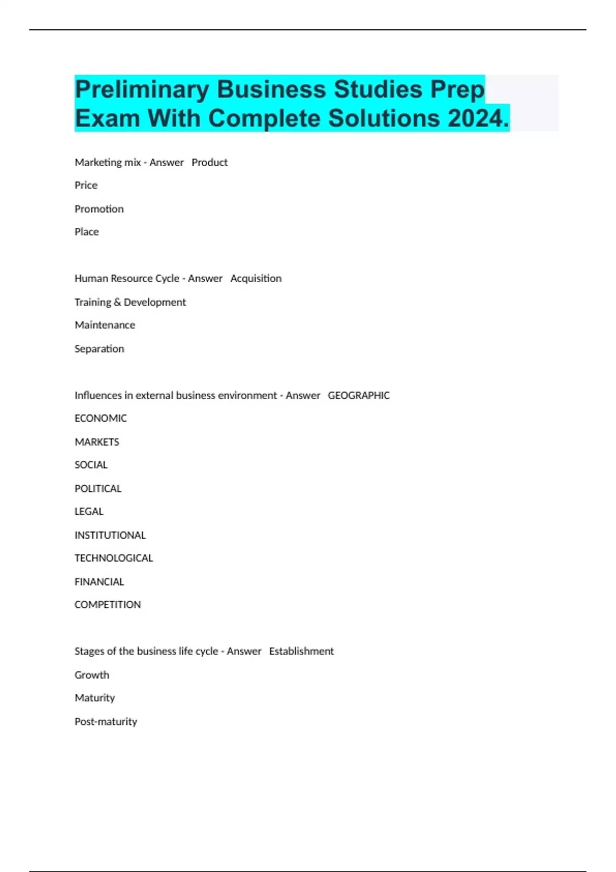 Preliminary Business Studies Prep Exam With Complete Solutions 2024.