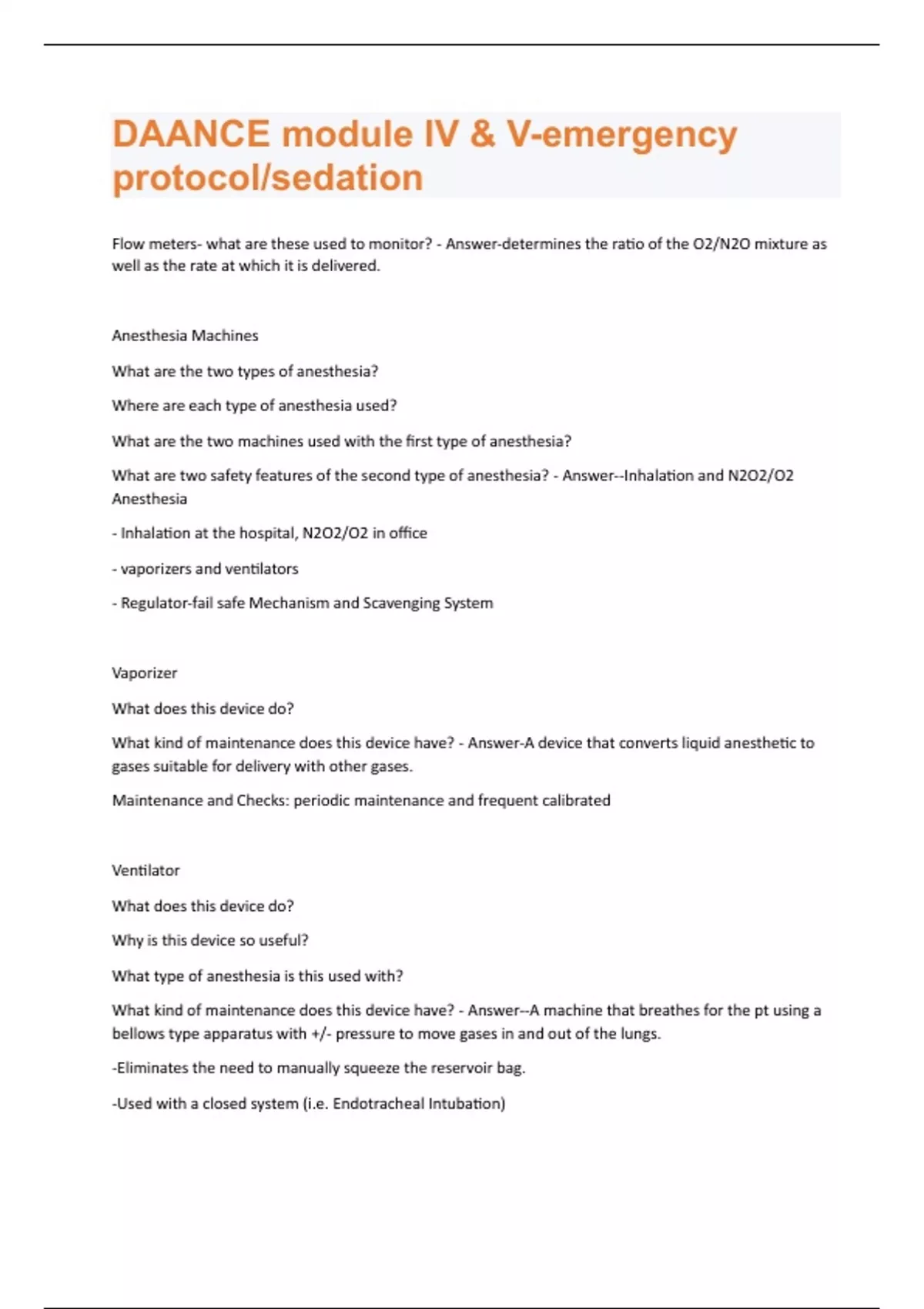 DAANCE module IV & V-emergency protocol/sedation Questions & Answers Already Passed!!