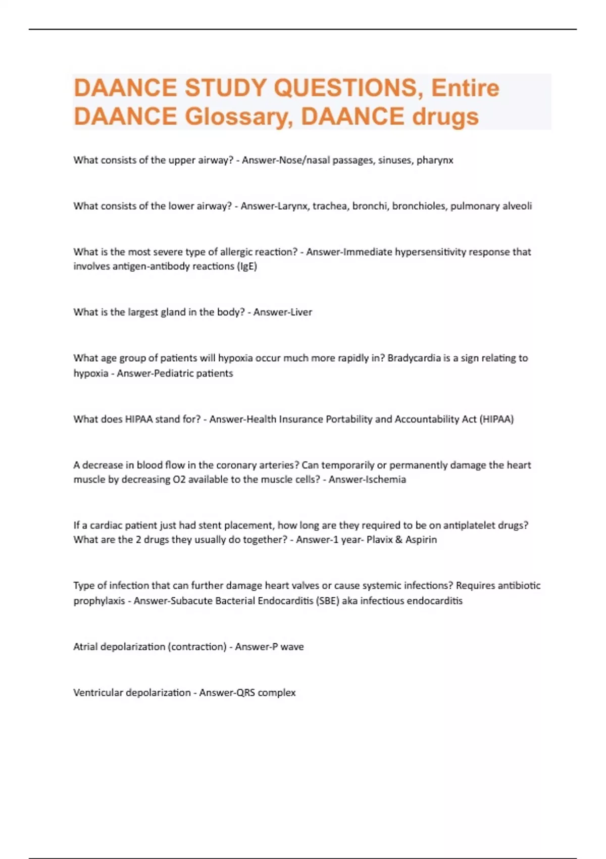 DAANCE STUDY QUESTIONS, Entire DAANCE Glossary, DAANCE drugs Questions & Answers Already Passed!!