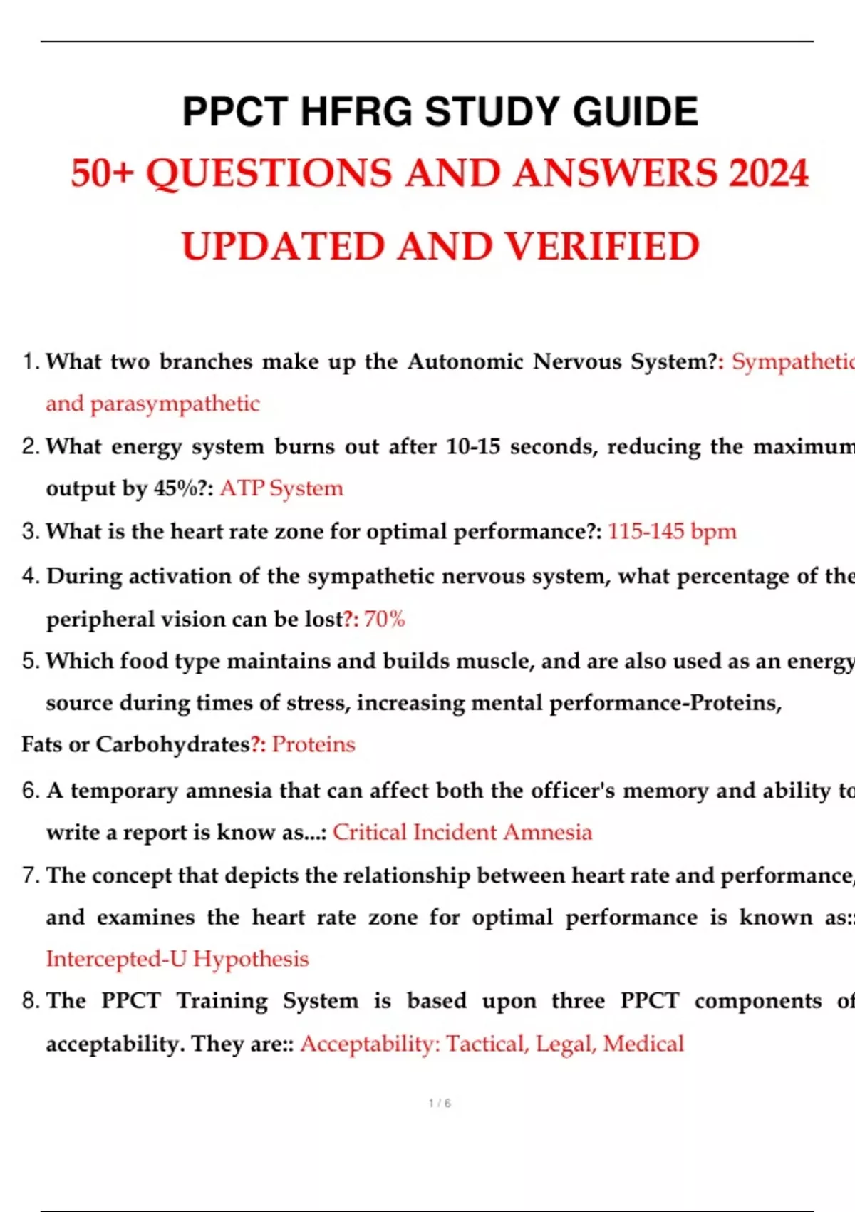 PPCT HFRG STUDY GUIDE 50+ QUESTIONS AND ANSWERS UPDATED AN VERIFIED