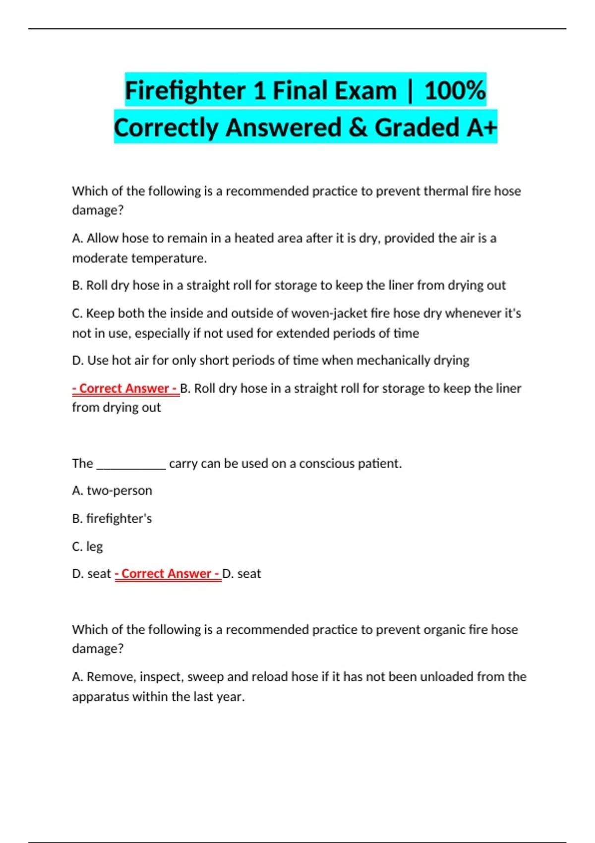 Firefighter 1 Final Exam | 100% Correctly Answered & Graded A+ Firefighter 1 Final Exam | 100% Correctly Answered & Graded A+ Firefighter 1 Final Exam | 100% Correctly Answered & Graded A+