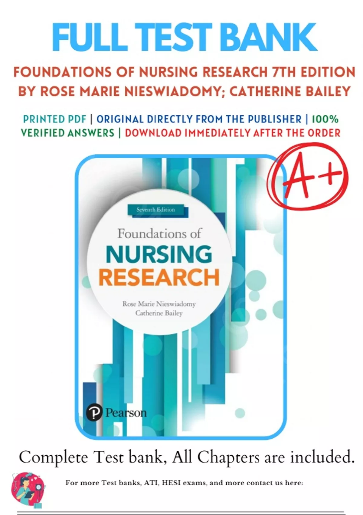 Test Bank for Foundations of Nursing Research 7th Edition By Rose Marie Nieswiadomy; Catherine Bailey Chapter 1-20 Complete Guide A+