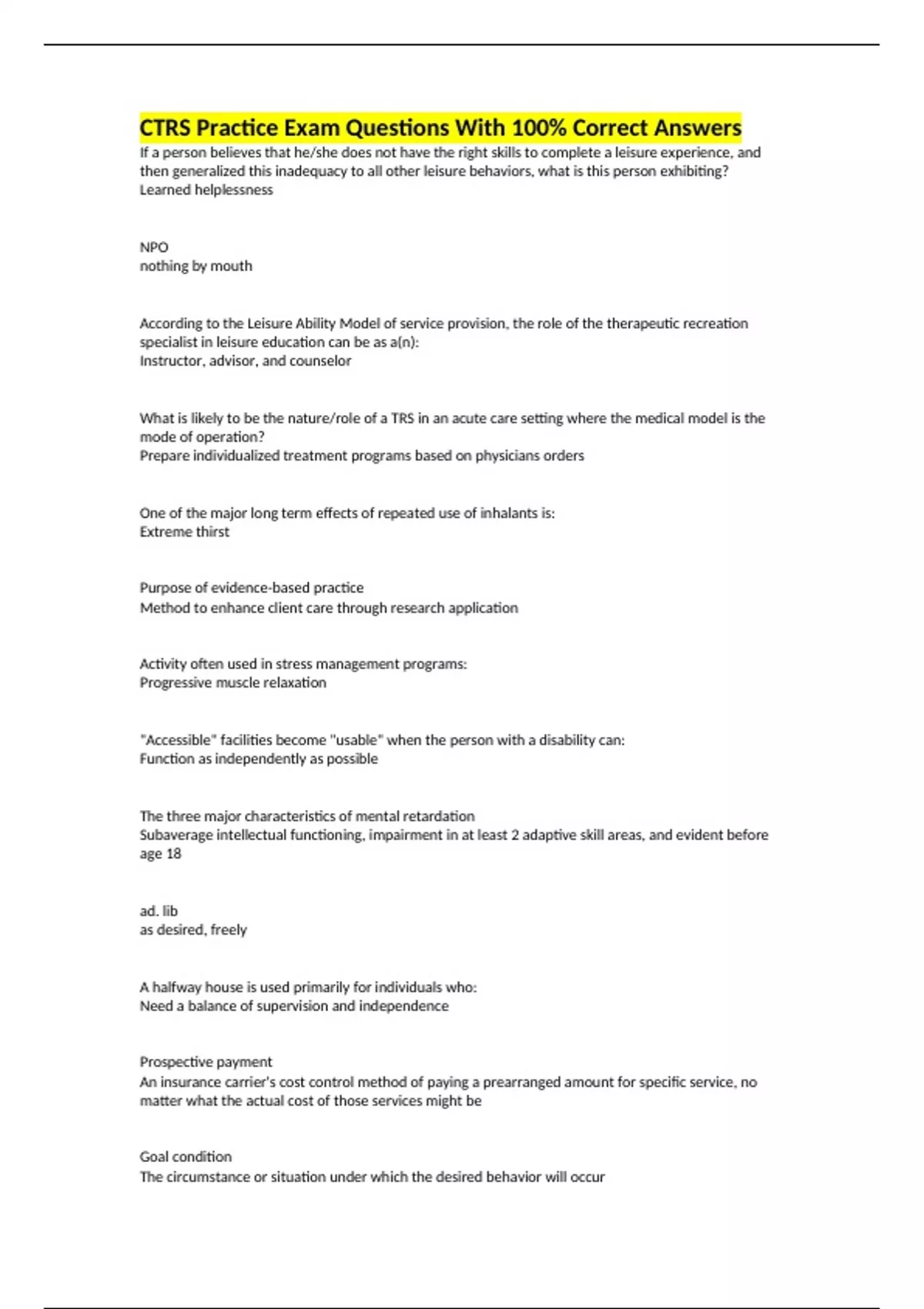 Standardize therapeutic recreation practice