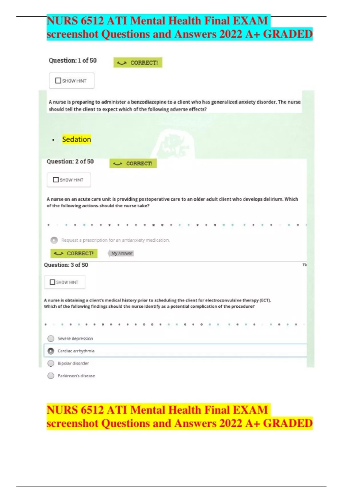 NURS 6512 ATI Mental Health Final EXAM screenshot Questions and Answers 2022 A+ GRADED