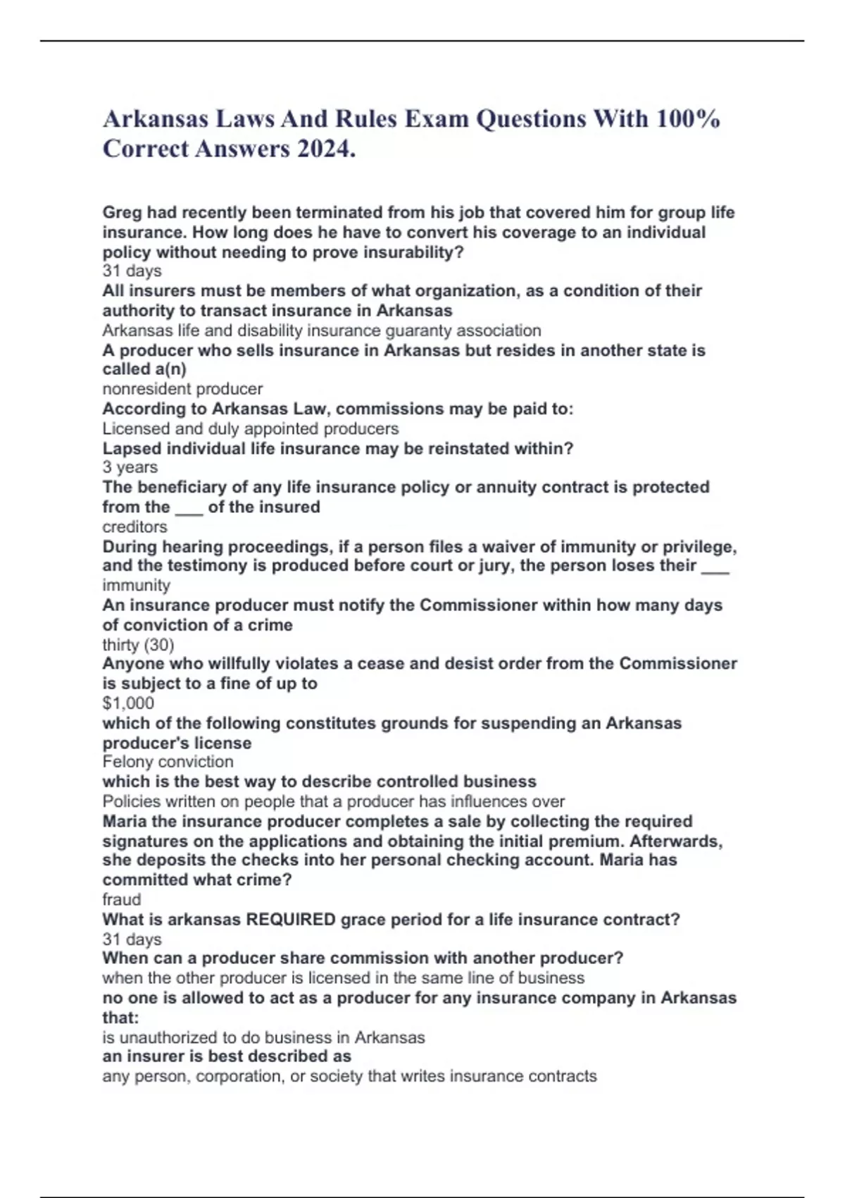 ACSM Personal Training Exam Questions and Answers Latest 2024 Solution Guide. During the initial client-contact process, you find that your potential client would rather work with a trainer of another gender. You should: Refer the client to another personal trainer who would be more compatible Which of the following is the MOST powerful method of marketing to potential clients? Word of mouth What is the waist-to-hip ratio threshold at which a female client's health is considered at risk? 0.88 A heart murmur that is clinically significant may be indicative of: Valvular heart diesease Which of the following predicts behavior change depending on the perceived threats to one's well-being? Health Belief Model A client is exercising once a week and slowly increases to twice a week over the course of a month. This is consistent with which theory of behavior change? Small Changes Model Regarding anatomy of the central nervous system, which of the following is TRUE? The CNS is represented by the brain and spinal cord ________ is the pressure exerted on the arterial wall during the ventricular contraction phase Systolic Blood Pressure The elbow can perform movements in which plane? Sagittal The intensity of work is represented by RPE The amount of force is represented by resistance The displacement is represented by ROM Which of the following is NOT a chronic benefit of regular cardiovascular exercise? Decreased exercise threshold for the onset of disease signs and symptoms The most prominent adaption with resistance training is: muscle hypertrophy Strength gains during early phases of resistance training are largely due to changes in the: nervous system A muscle generates enough force to overcome an external resistance and shorten. This is known as which type of action? Concentric A muscle maintains constant force without any changes in joint angle. This is known as which type of action?