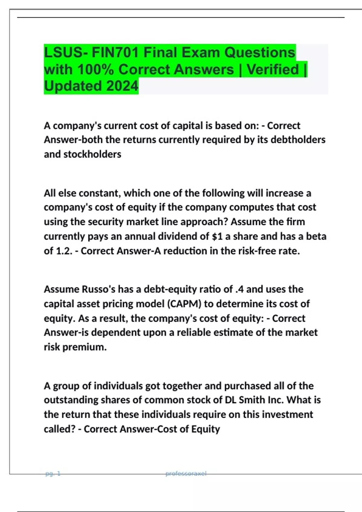 lsus fin701 final exam questions with 100 correc