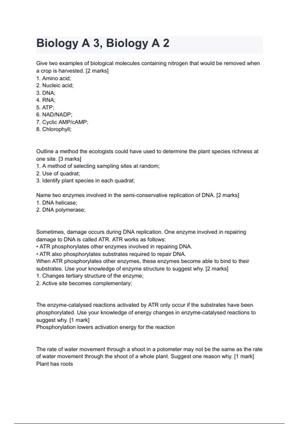 - Biology A 3, Biology A 2