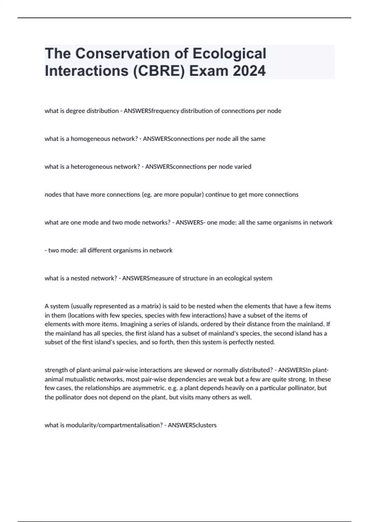 The Conservation of Ecological Interactions (CBRE) Exam 2024