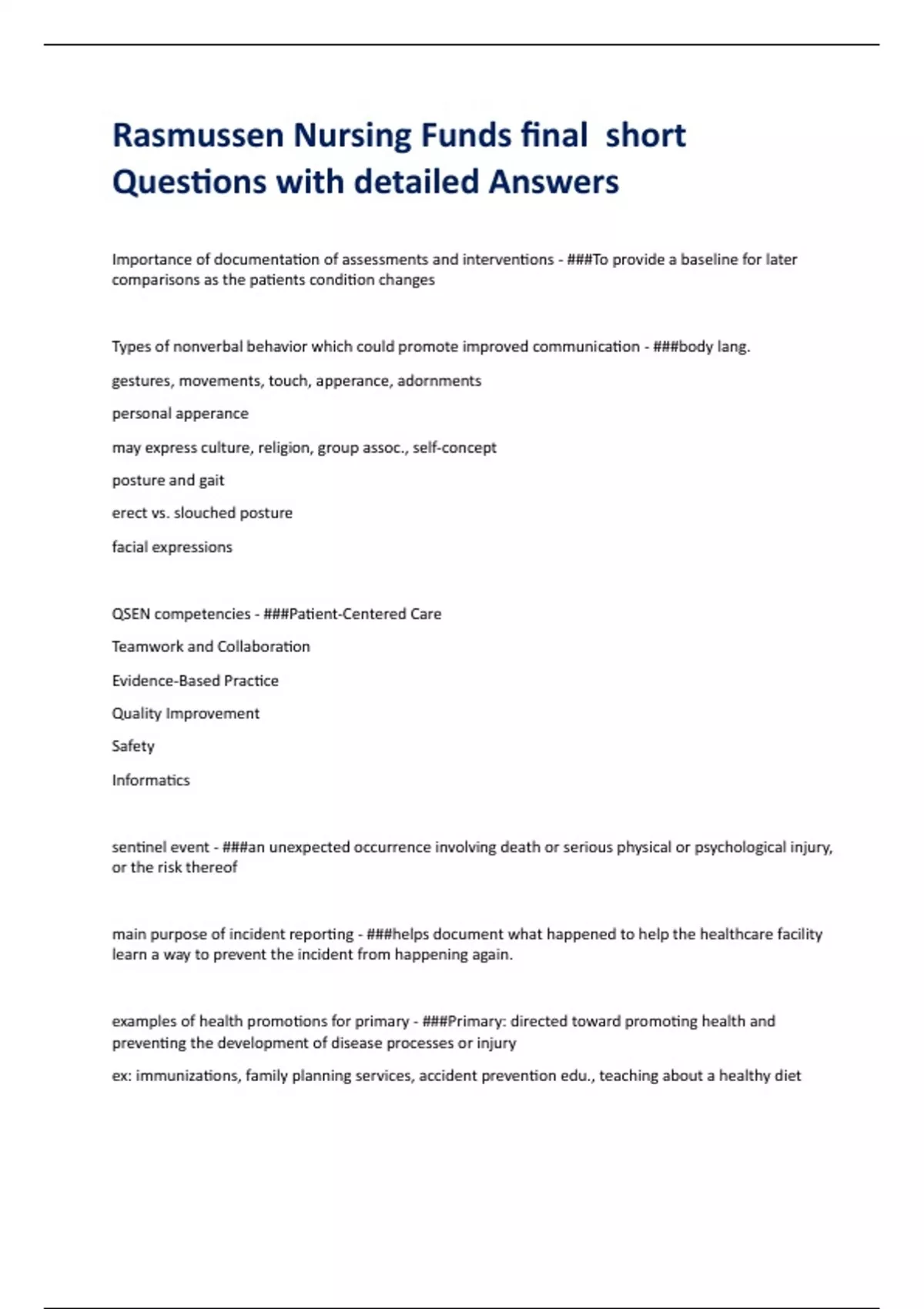 Rasmussen Nursing Funds final short Questions with detailed Answers