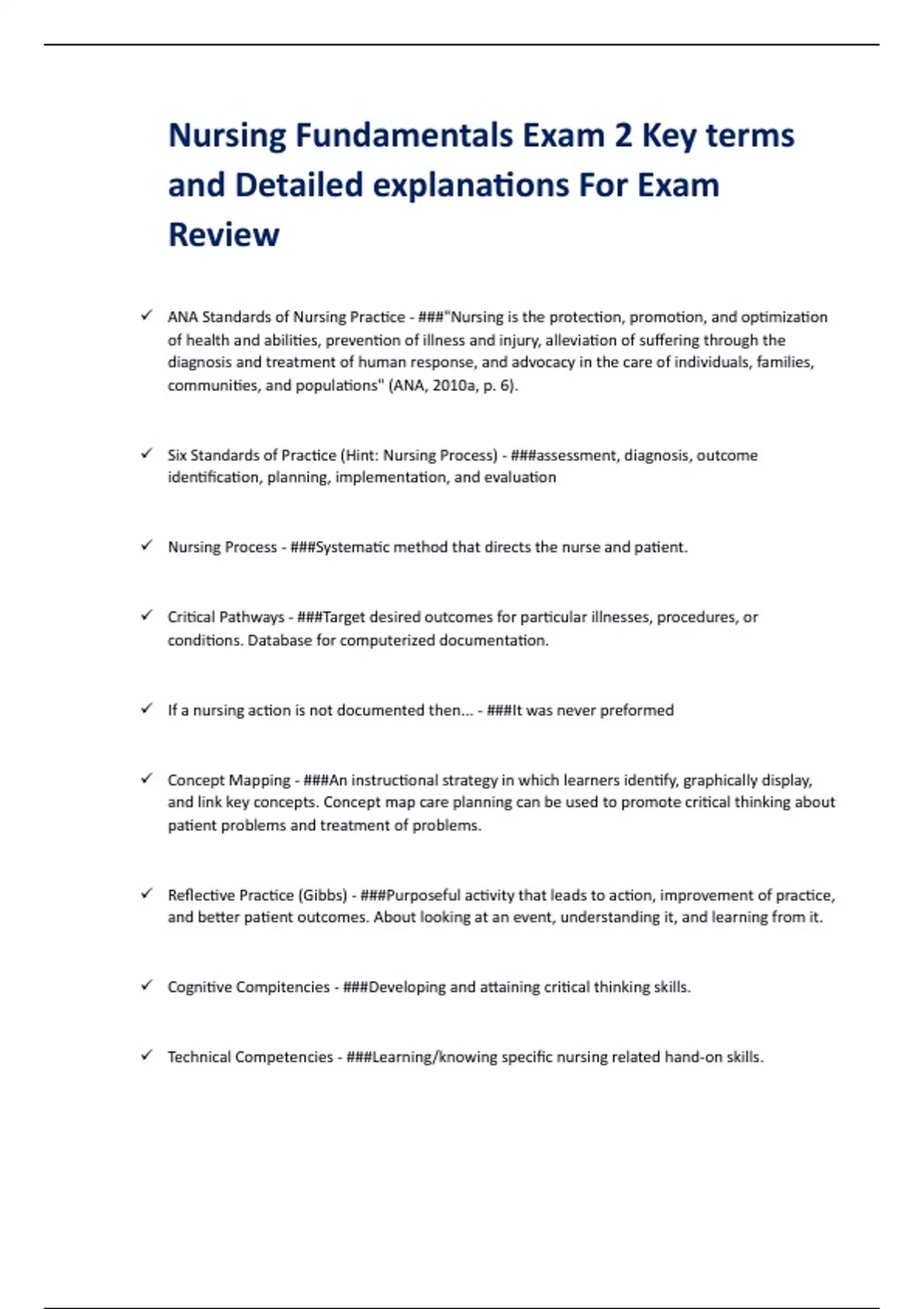 Nursing Fundamentals Exam 2 Key terms and Detailed explanations For Exam Review