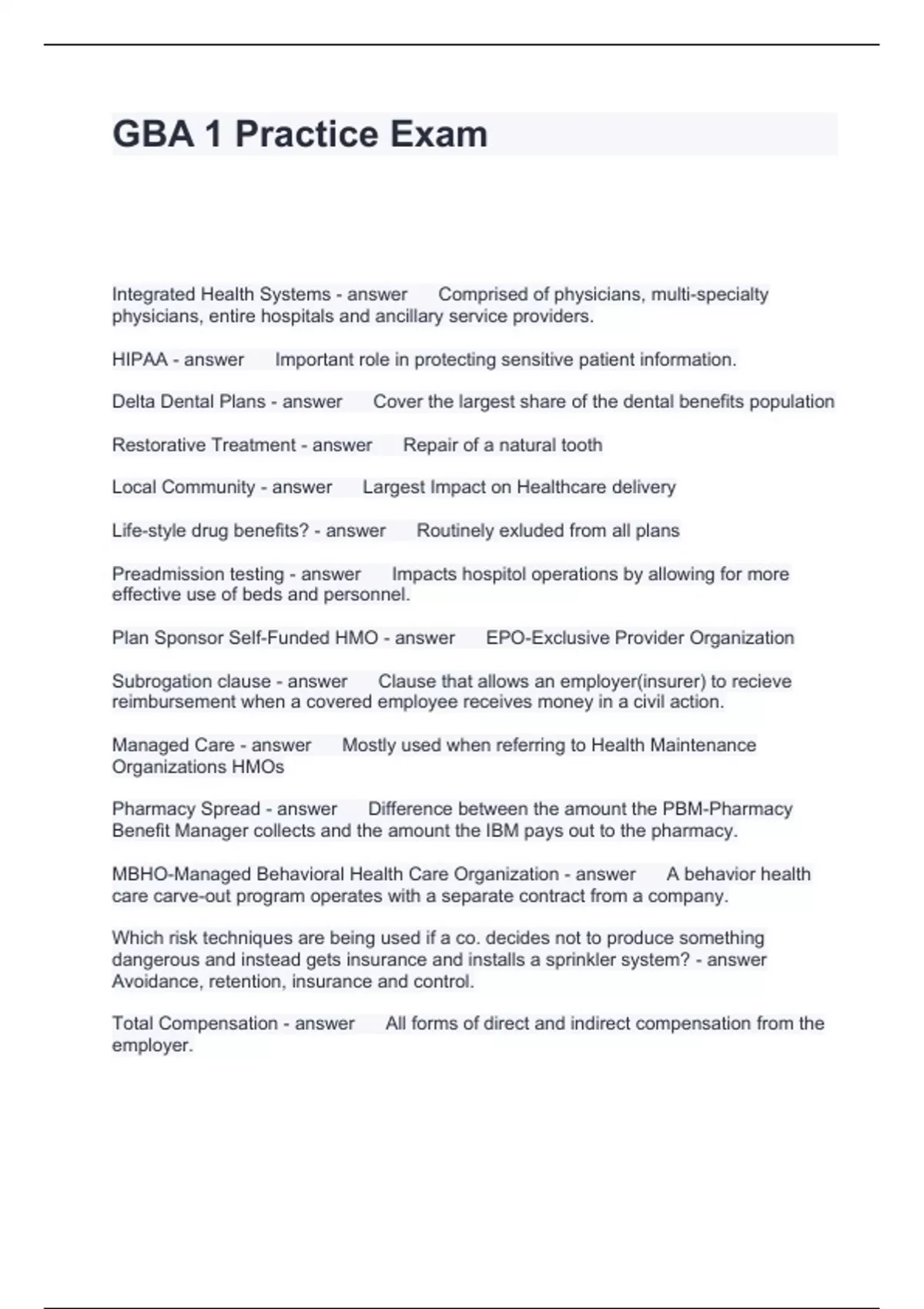 GBA 1 Practice Exam Questions and Answers Graded A+