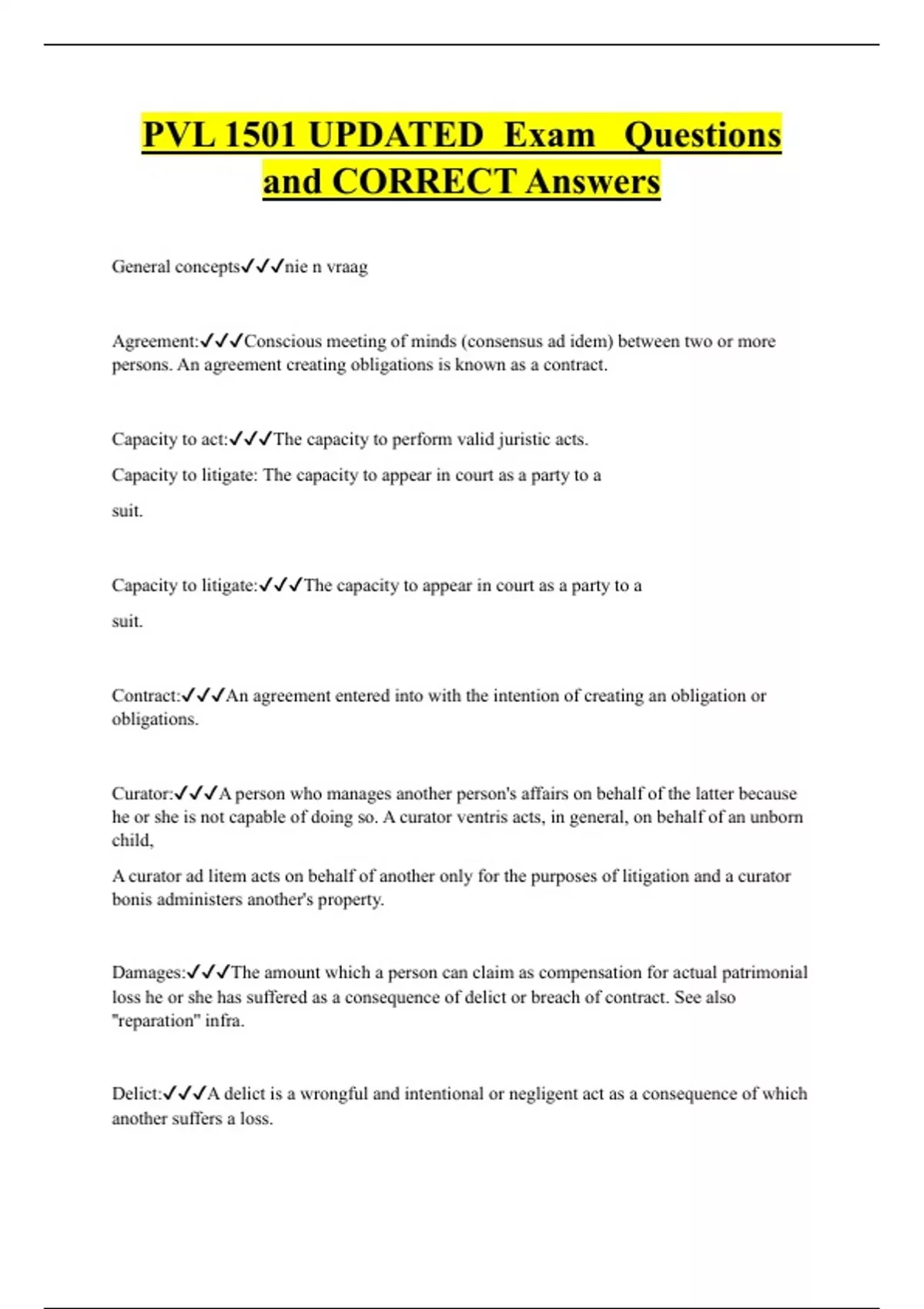 PVL 1501 UPDATED Exam Questions and CORRECT Answers