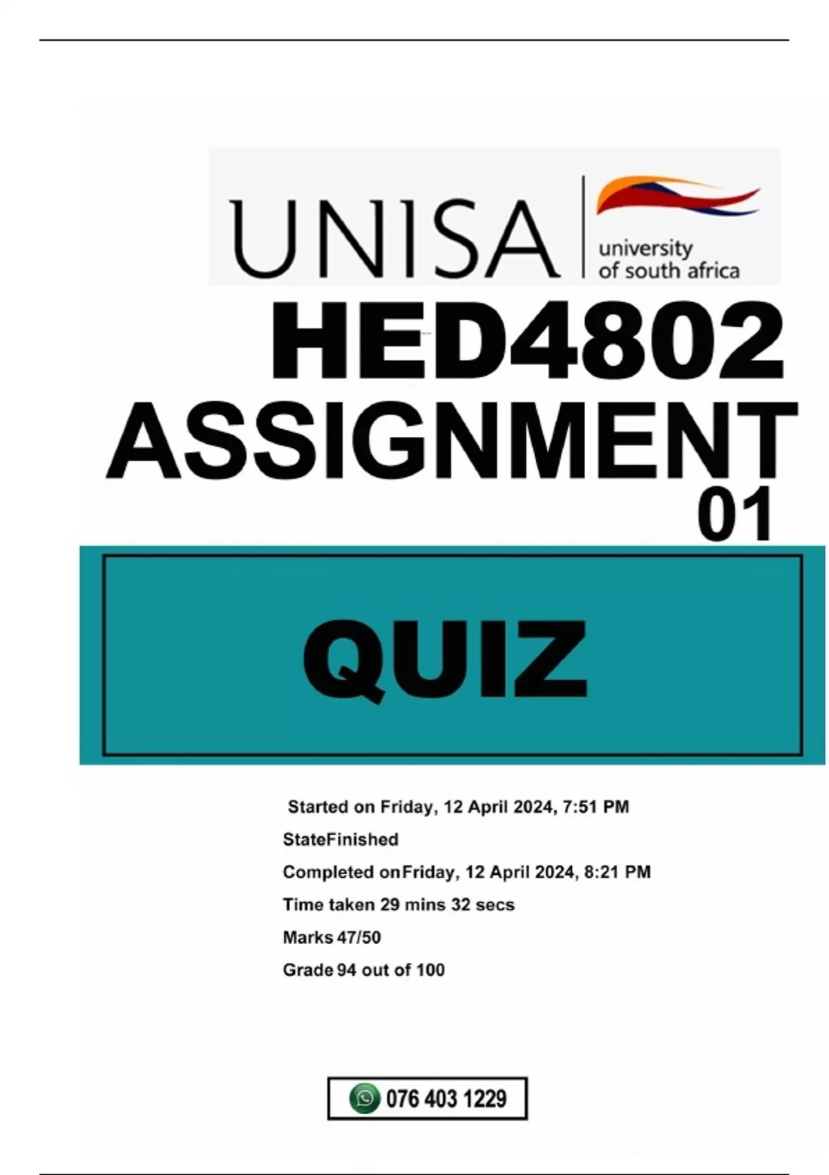 HED4802 ASSIGNMENT 01 (QUIZ) DUE 2024