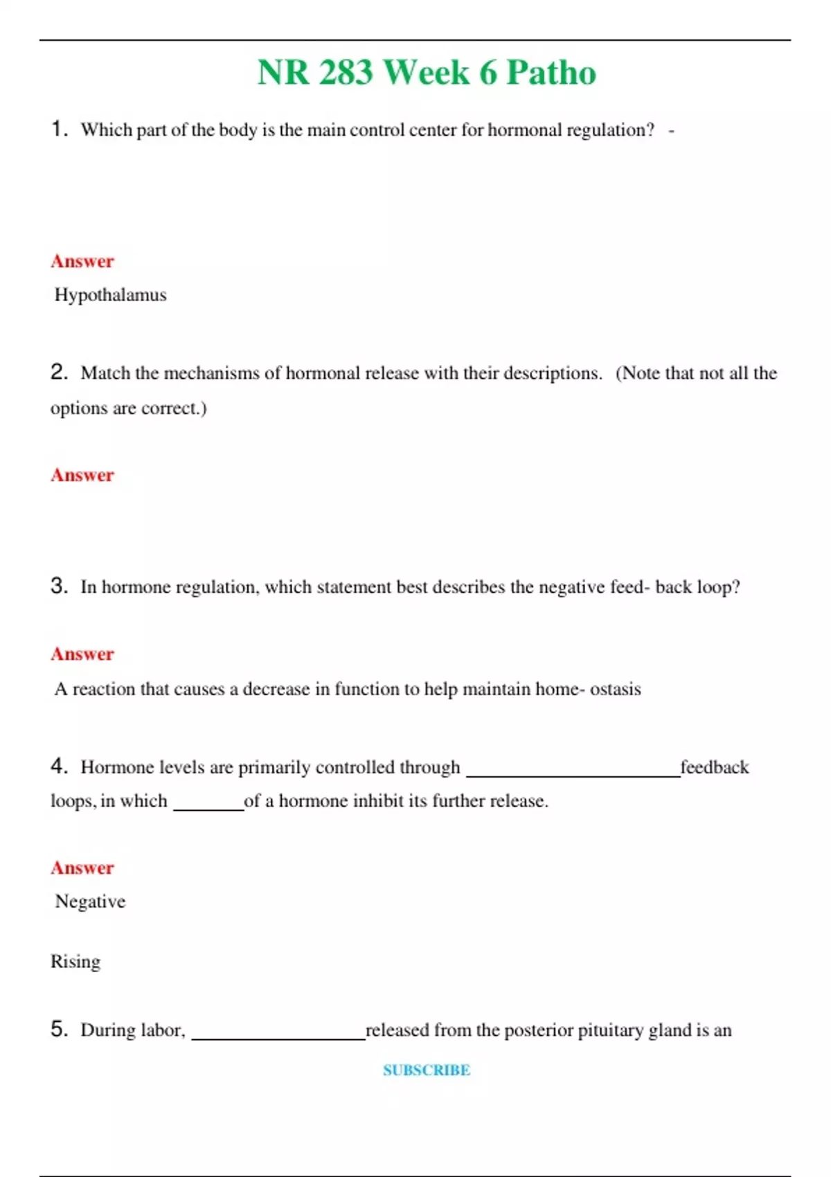NR 283 Week 6 Patho (Latest 2024 / 2025) Questions and Answers (Verified Answers)