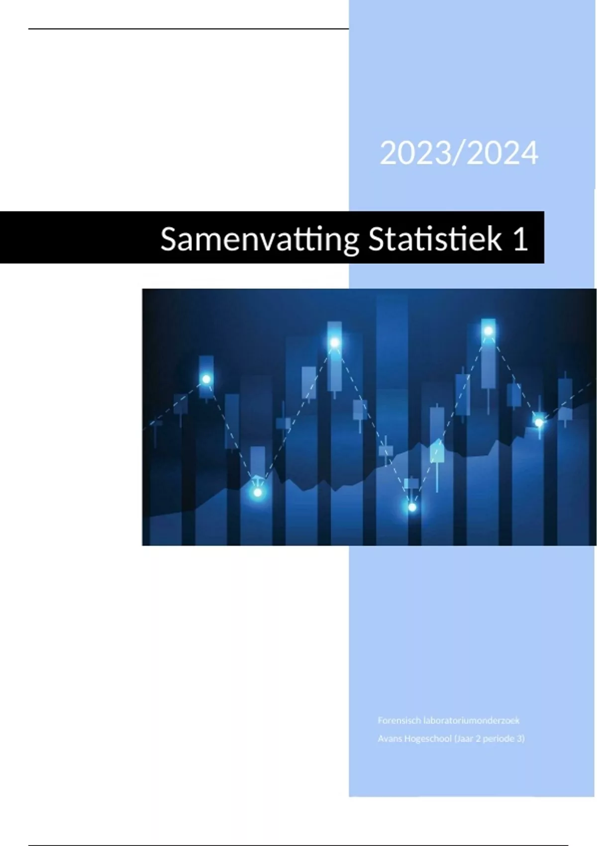 In dit document zijn alle lessen en onderdelen van de training statistiek 1 samengevat. Ook staan er oefenopdrachten in en huiswerkopdrachten met de uitwerkingen.