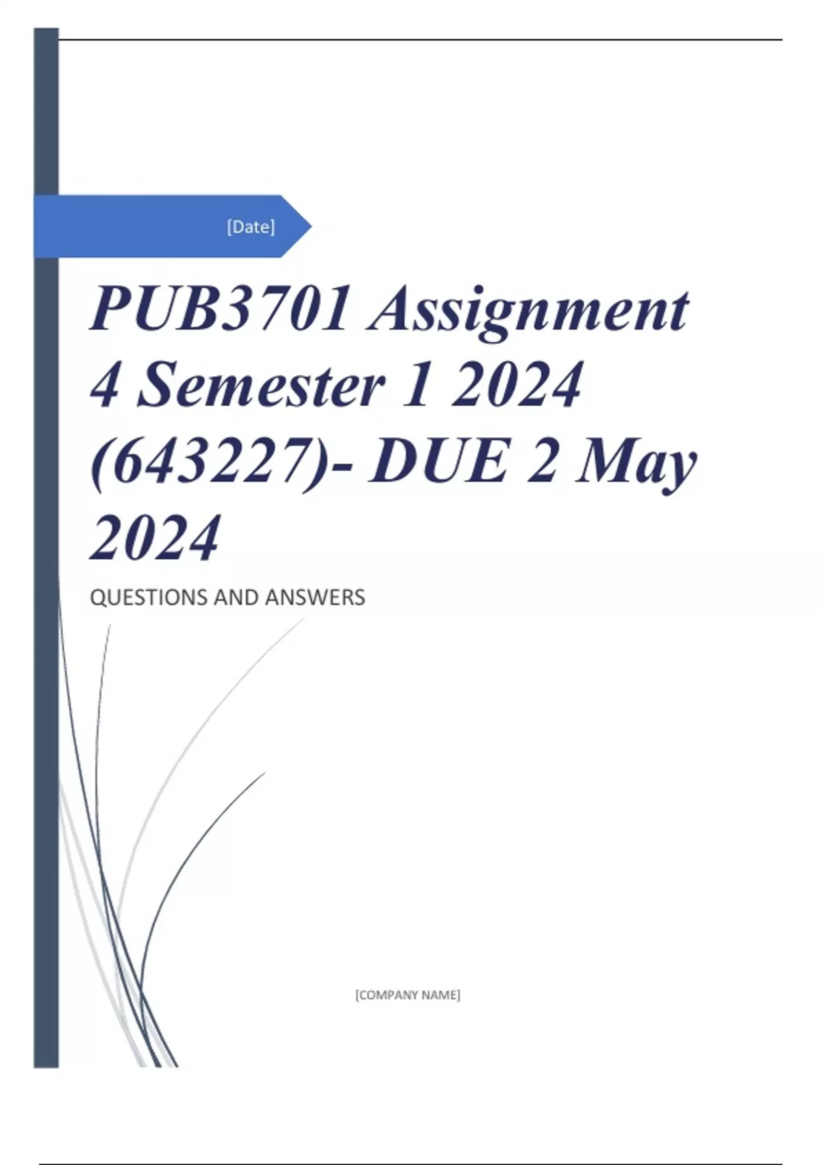 , PUB3701 Assignment 4 Semester 1 2024 (643227)- DUE 2