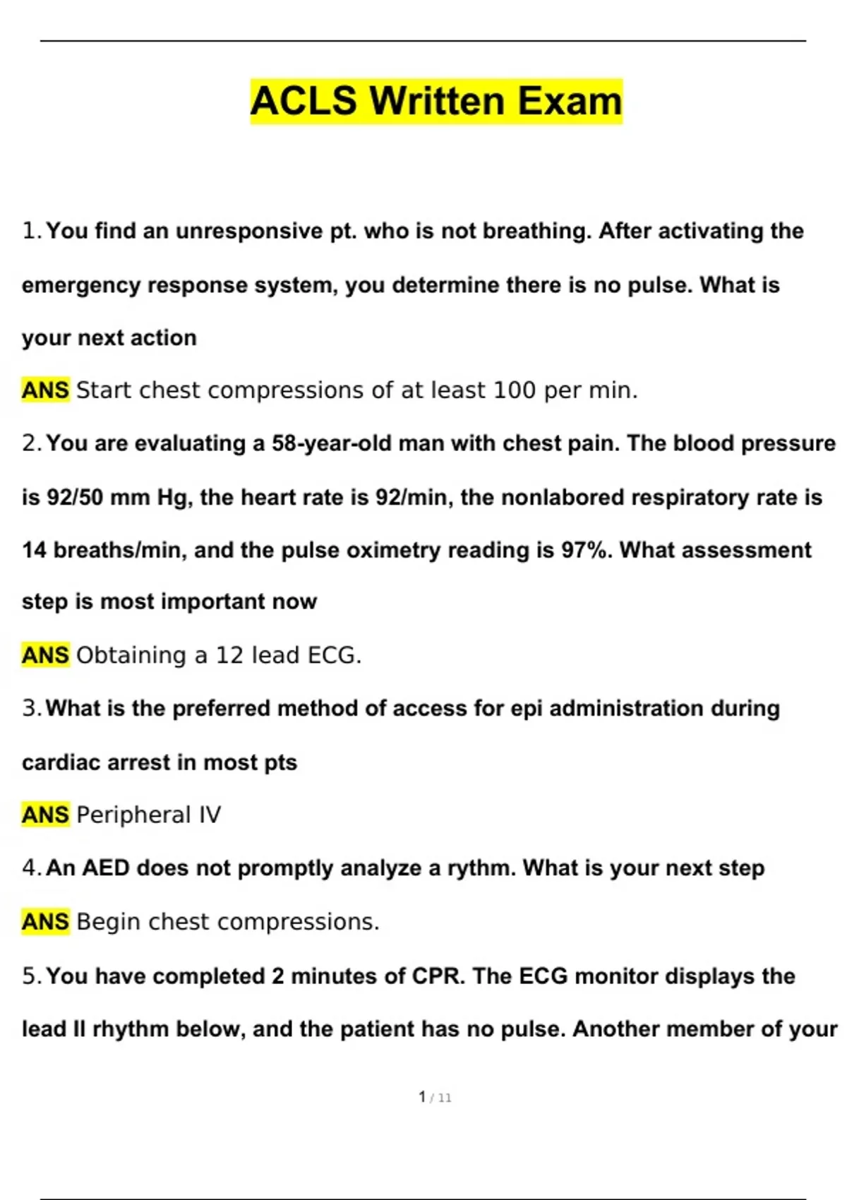 ACLS Written Exam Questions and Answers Latest (2024 / 2025) (Verified Answers by Expert)