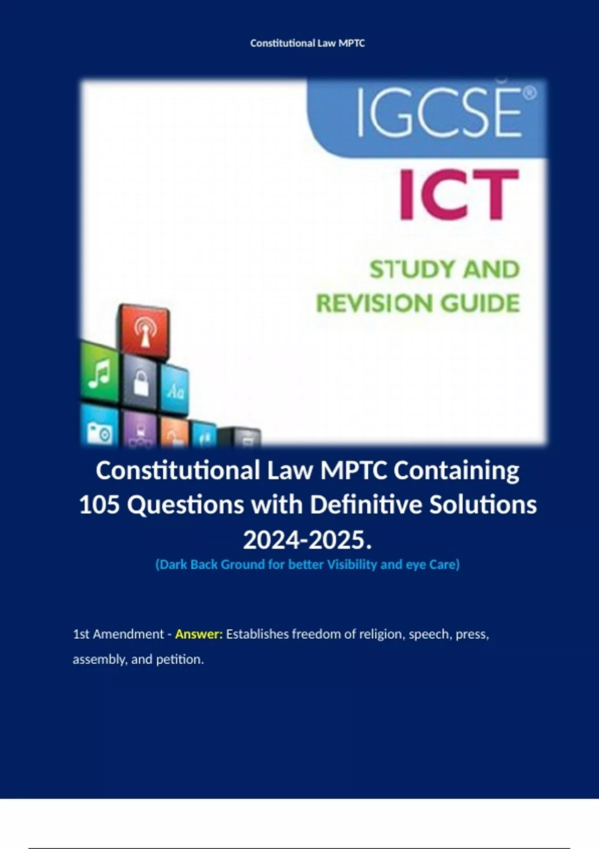Constitutional Law MPTC Containing 105 Questions with Definitive Solutions .