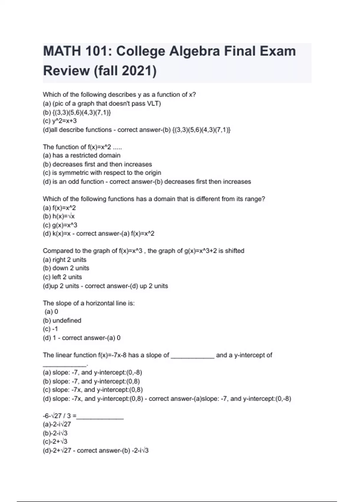 MATH 101_ College Algebra Final Exam Review (fall 2021)