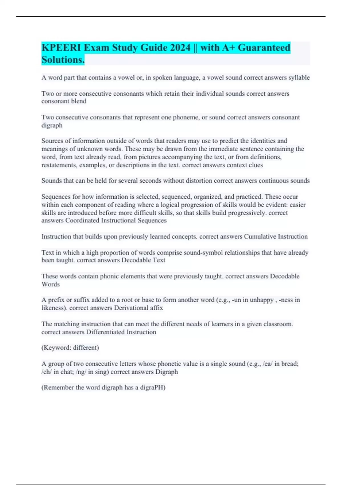 KPEERI Exam Study Guide 2024 || with A+ Guaranteed Solutions.