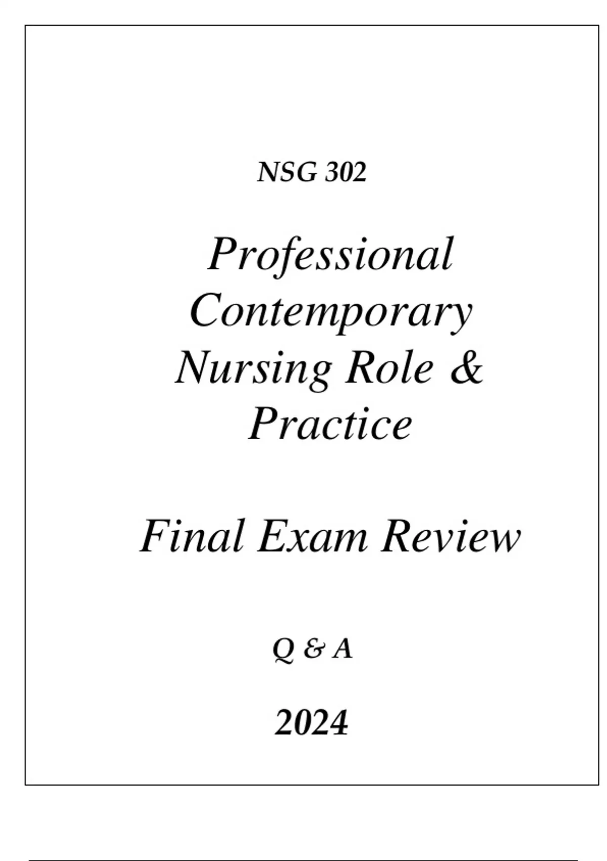 (UOP) NSG 302 PROFESSIONAL CONTEMPORARY NURSING ROLE & PRACTICE FINAL EXAM REVIEW
