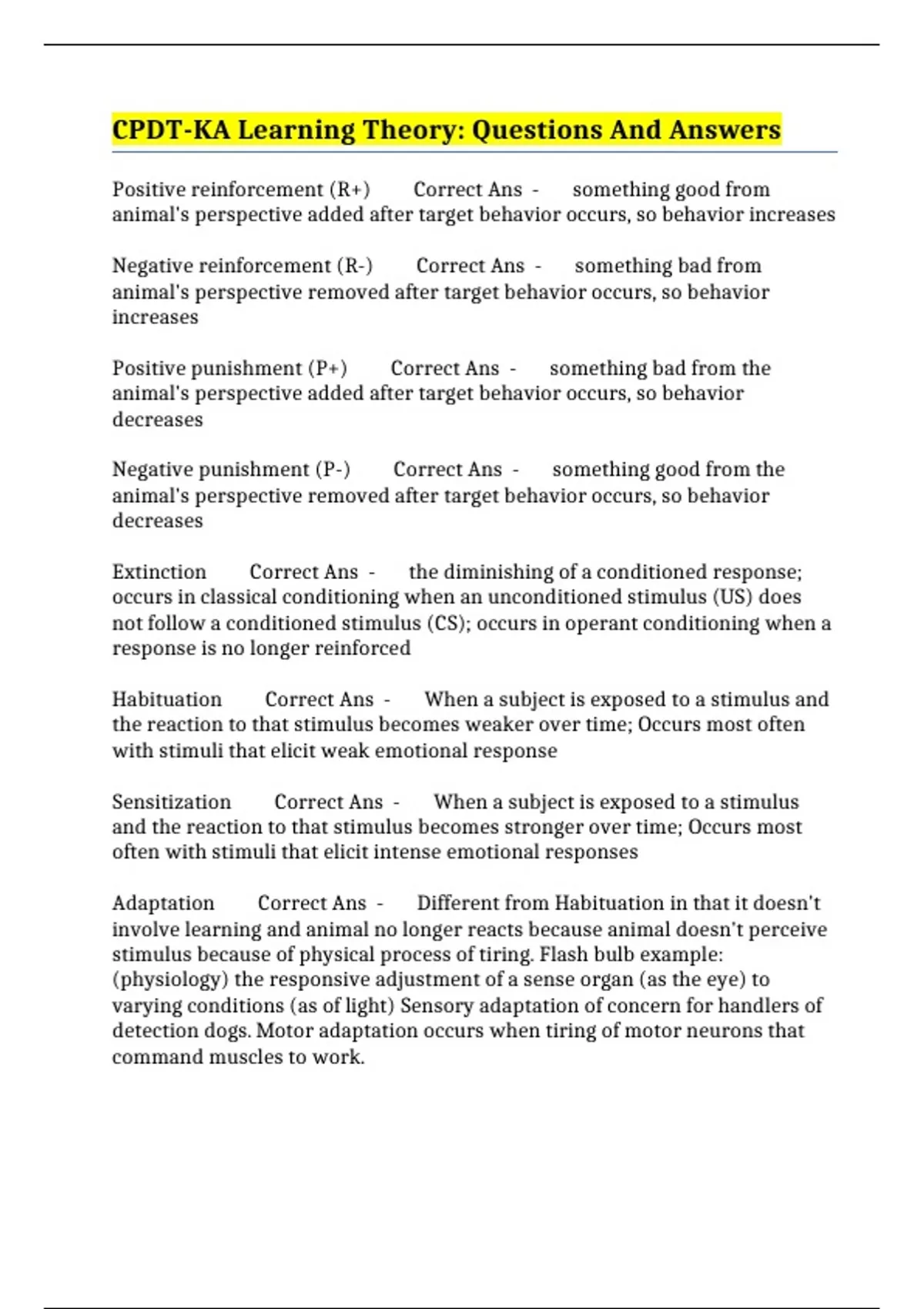 CPDT-KA Learning Theory: Questions And Answers