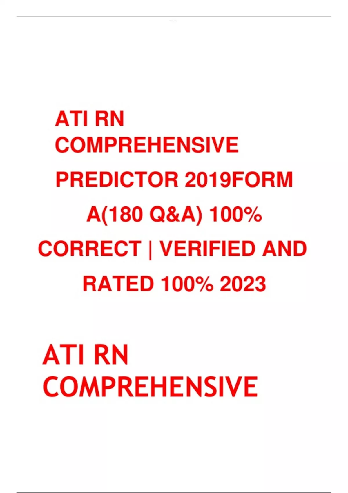ATI RN COMPREHENSIVE PREDICTOR 2019FORM A(180 Q&A) 100% CORRECT | VERIFIED AND RATED 100% 2023
