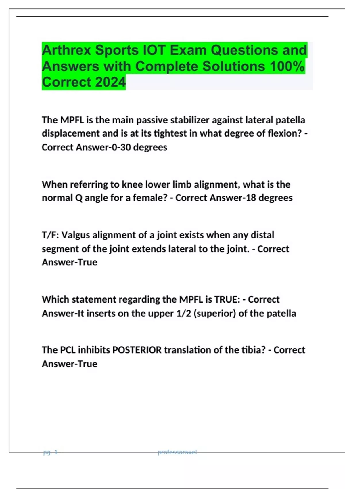 Arthrex Sports IOT Exam Questions and Answers with Complete Solutions 100% Correct 2024