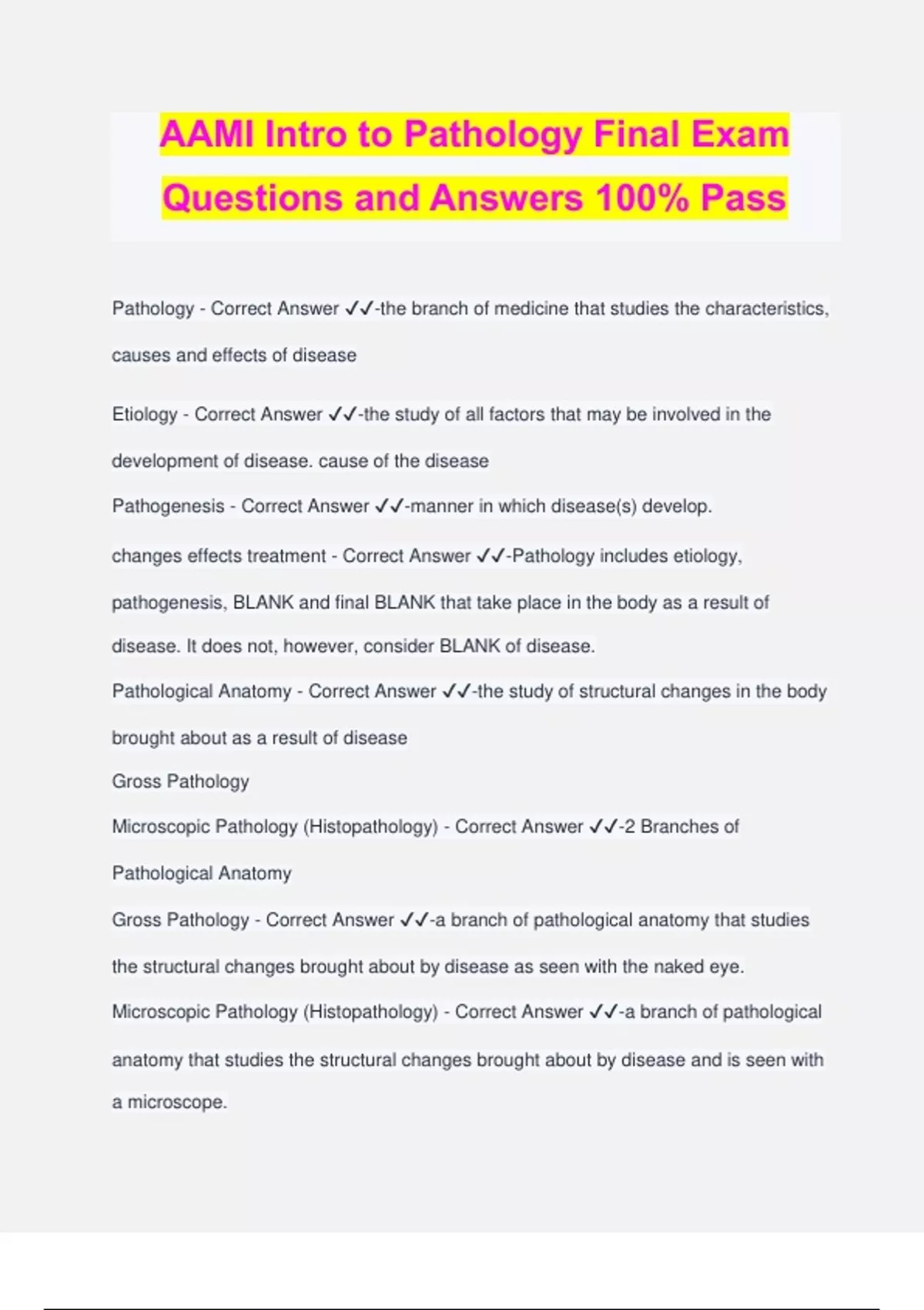 AAMI Intro to Pathology Final Exam Questions and Answers 100% Pass