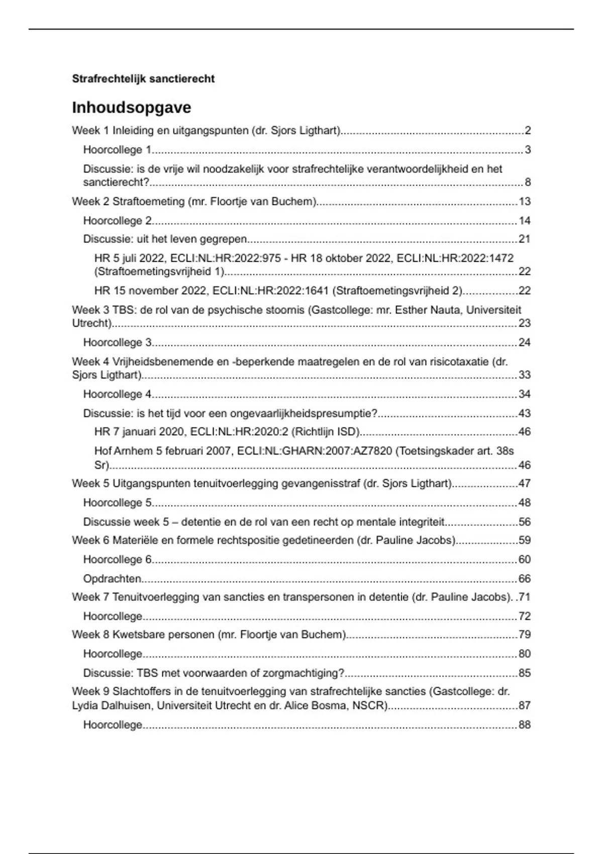 Week 2 Straftoemeting (mr. Floortje van Buchem)................................................................13