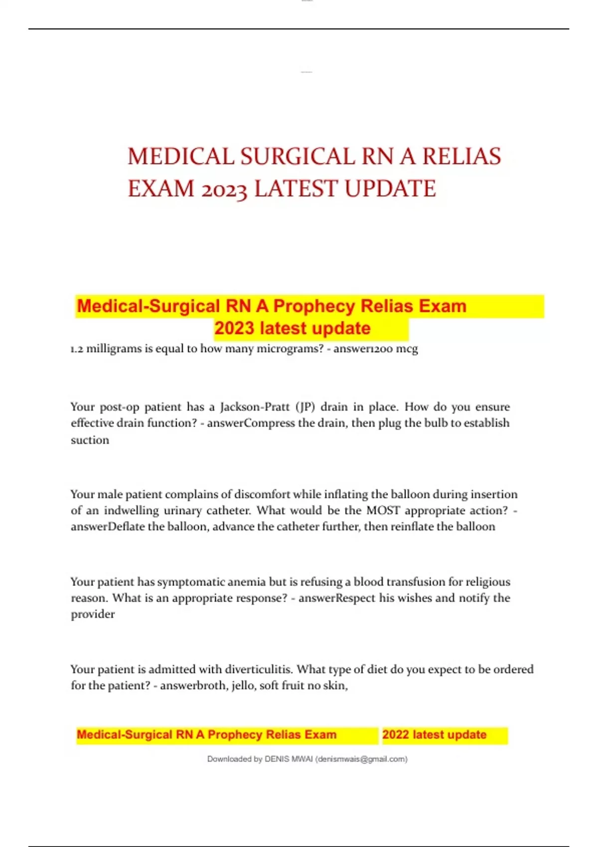 MEDICAL SURGICAL RN A RELIAS EXAM 2023 LATEST UPDATE