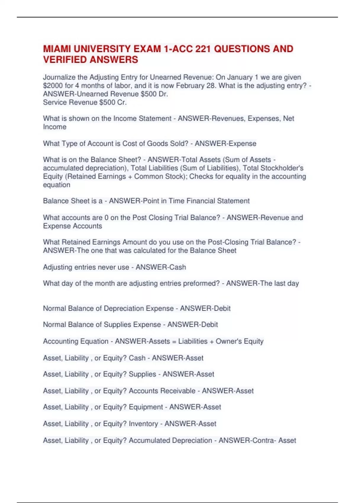 MIAMI UNIVERSITY EXAM 1-ACC 221 QUESTIONS AND VERIFIED ANSWERS
