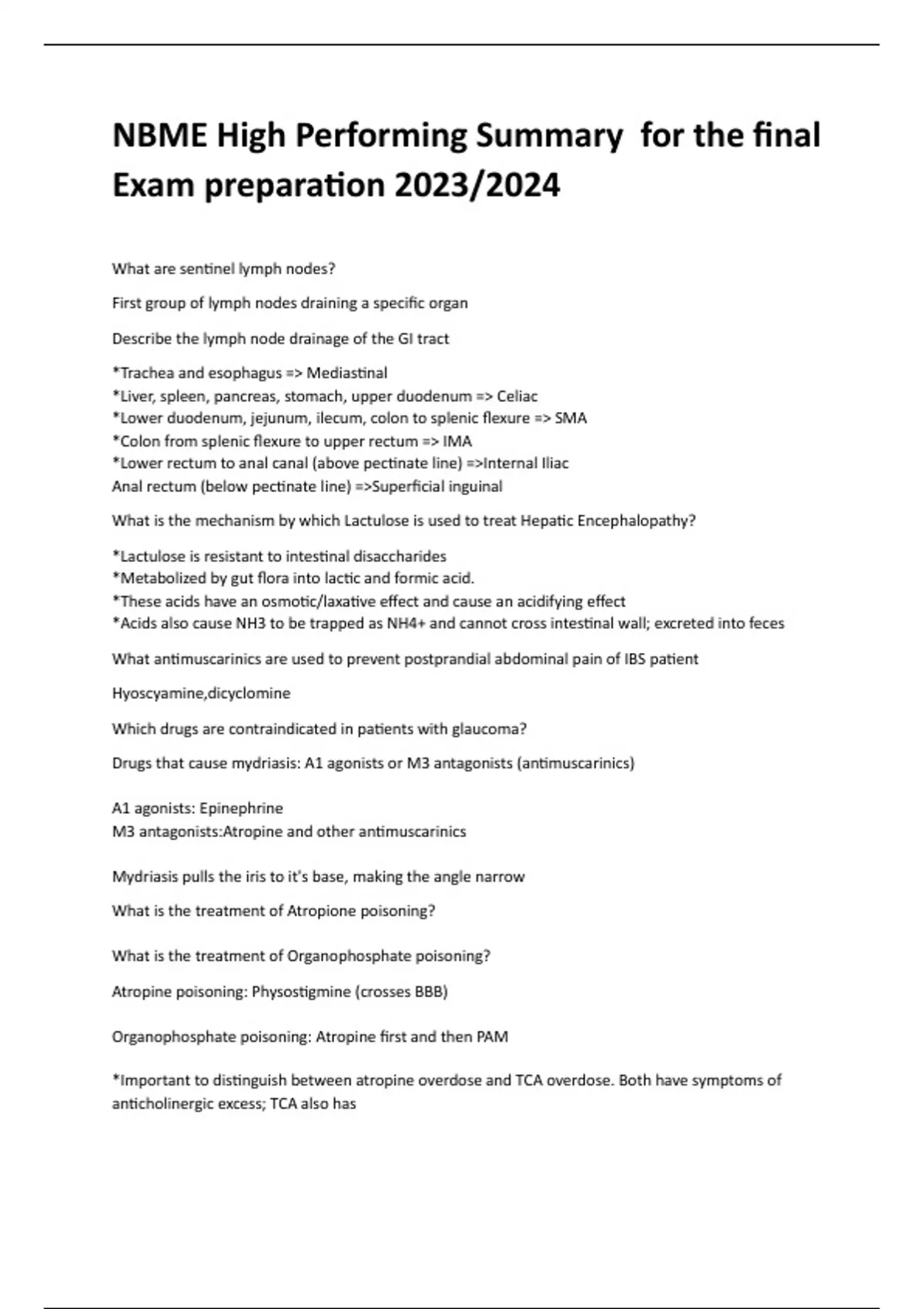 NBME High Performing Summary for the final Exam preparation 2023/2024