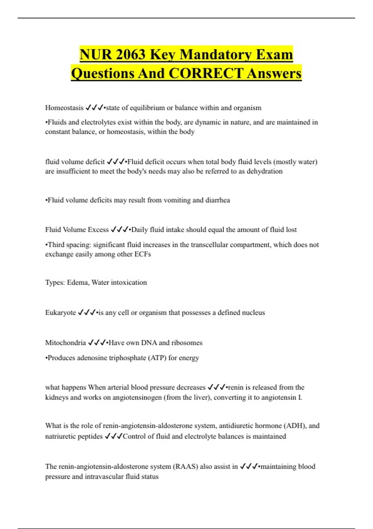 NUR 2063 Key Mandatory Exam Questions And CORRECT Answers